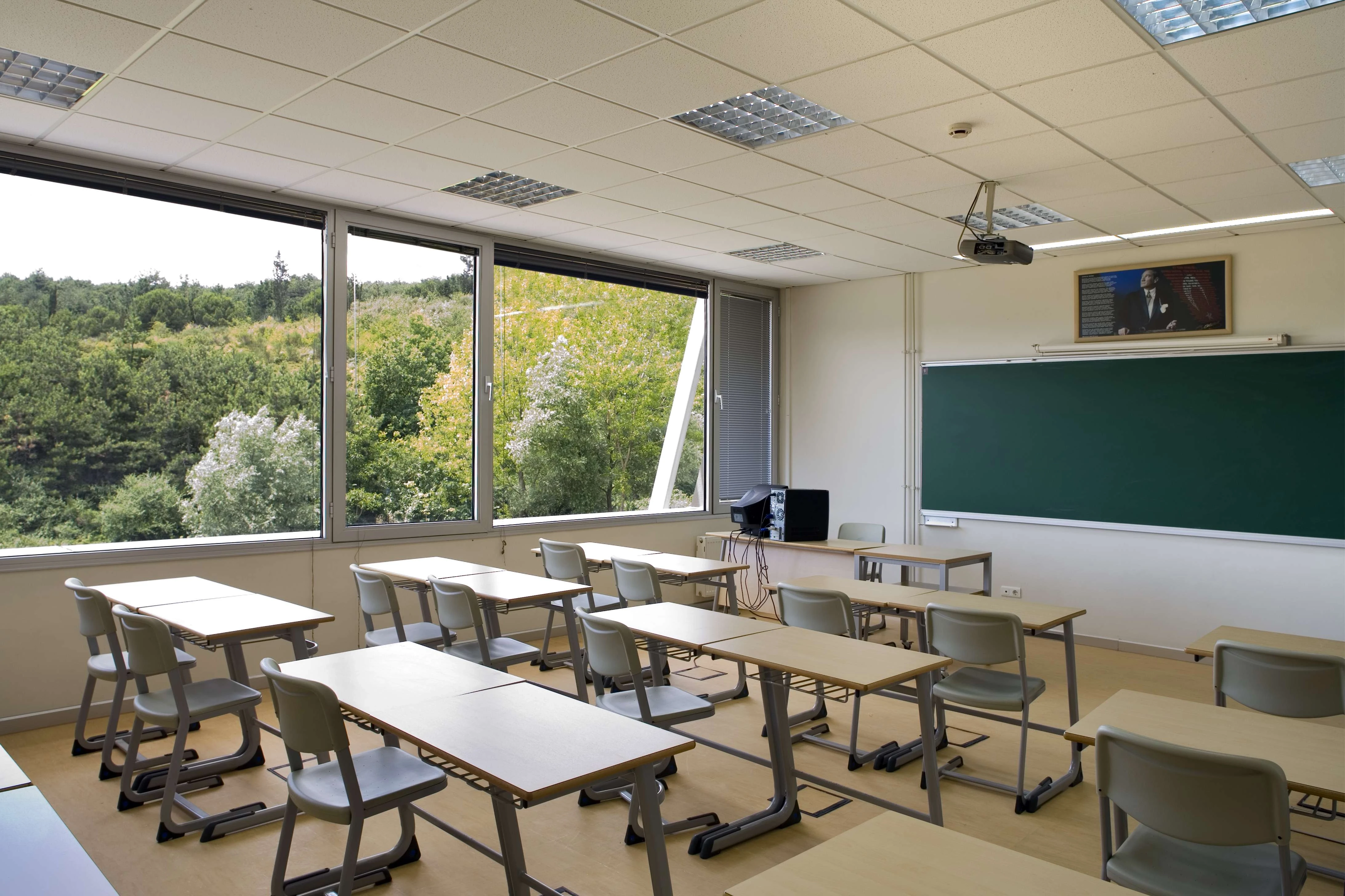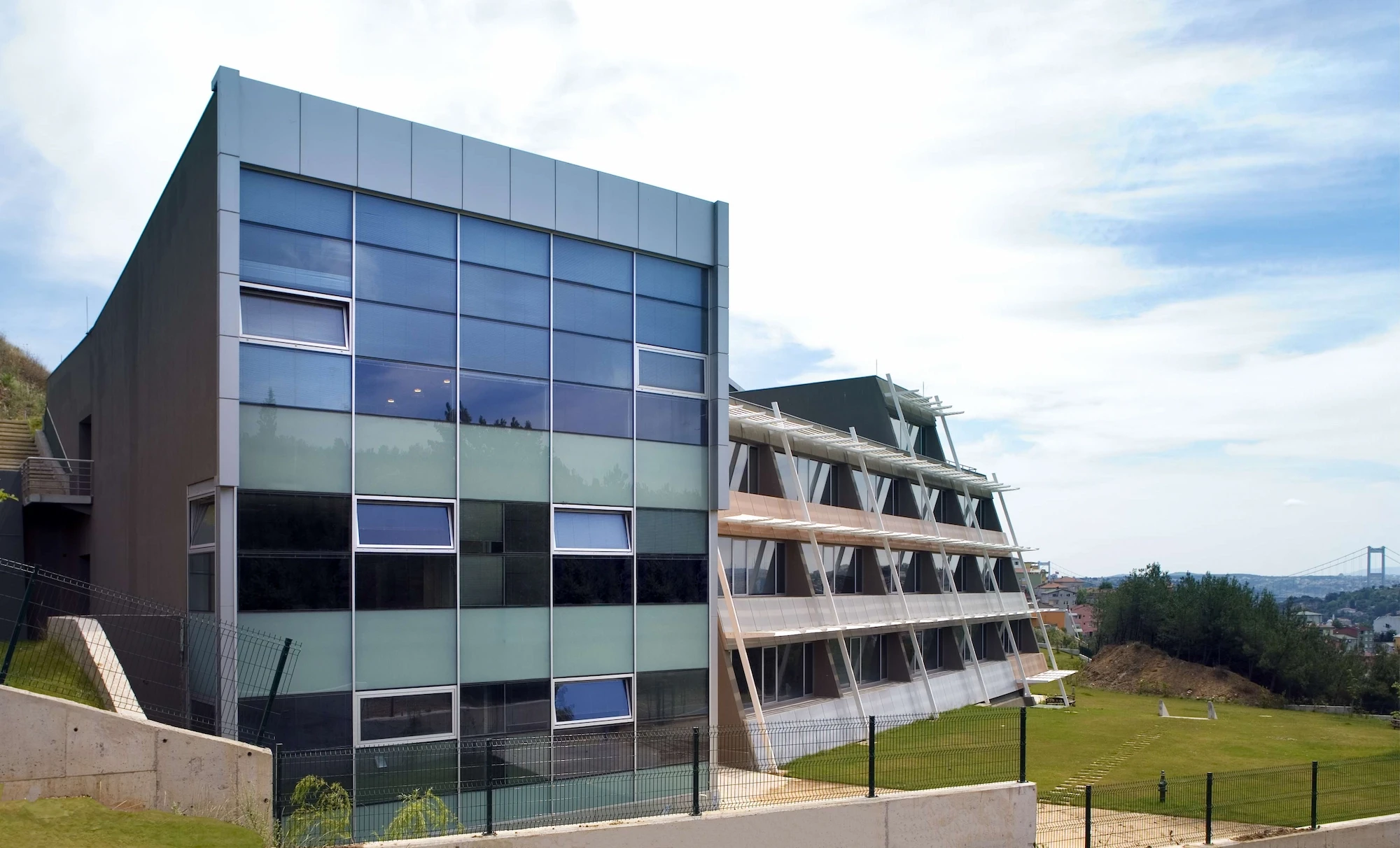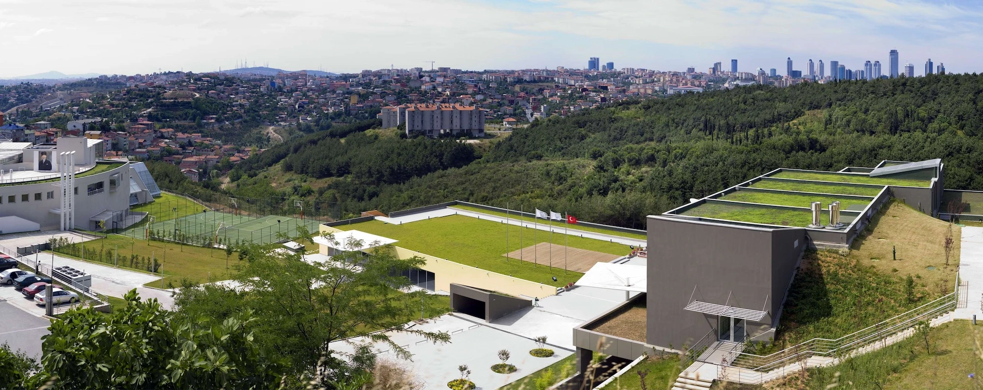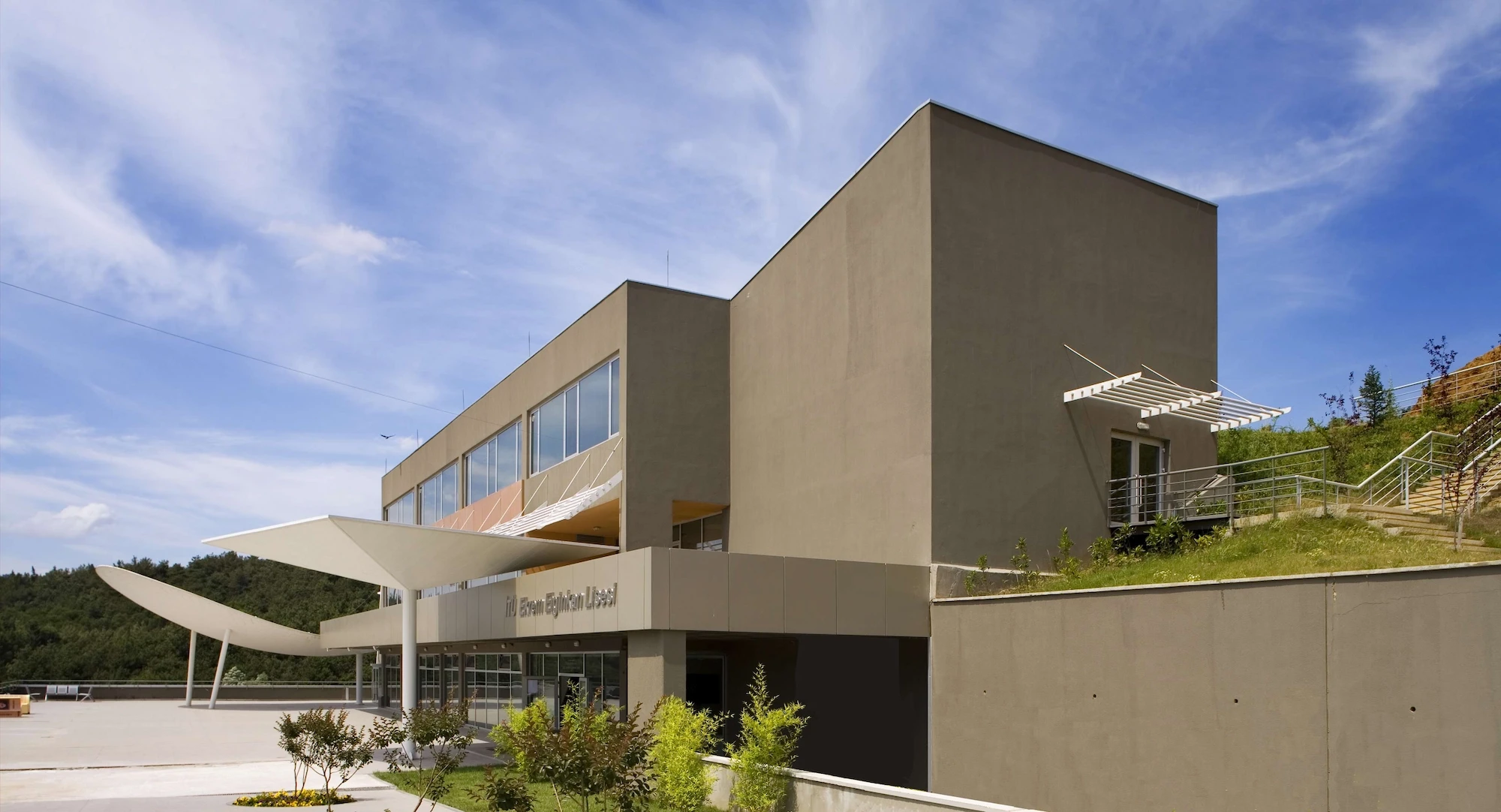 The building consists of three main parts. The first part consists of classrooms, laboratories, administration, a multi-purpose hall, and social facilities, the second part includes the library and some workshops, and the third part includes the swimming pool and related functions. An inviting atmosphere has been created on the entrance façade of Ekrem Elginkan High School, which has impressive open spaces with a wide entrance platform and a carefully designed ceremony area combining green and wood.