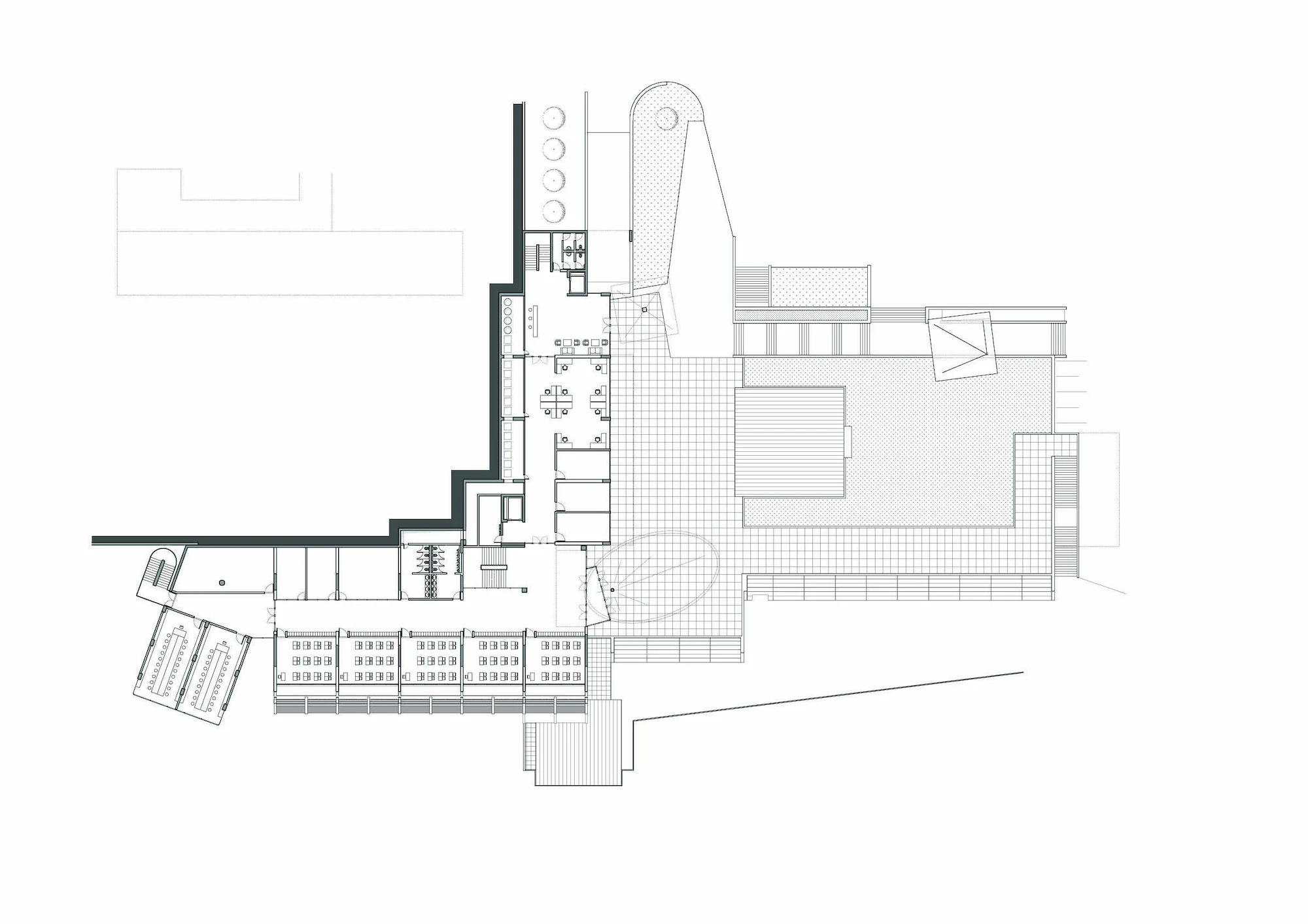 The project aims to design a building that complements the primary school building with which it has a neighboring relationship on the dominant hill. The design doesn't create a large mass in the rearview by leaning on the steep slope behind it and is in harmony with the land. The sports fields and swimming pool open to the south, located between the primary school and the high school, constitute the common-use areas of both schools.