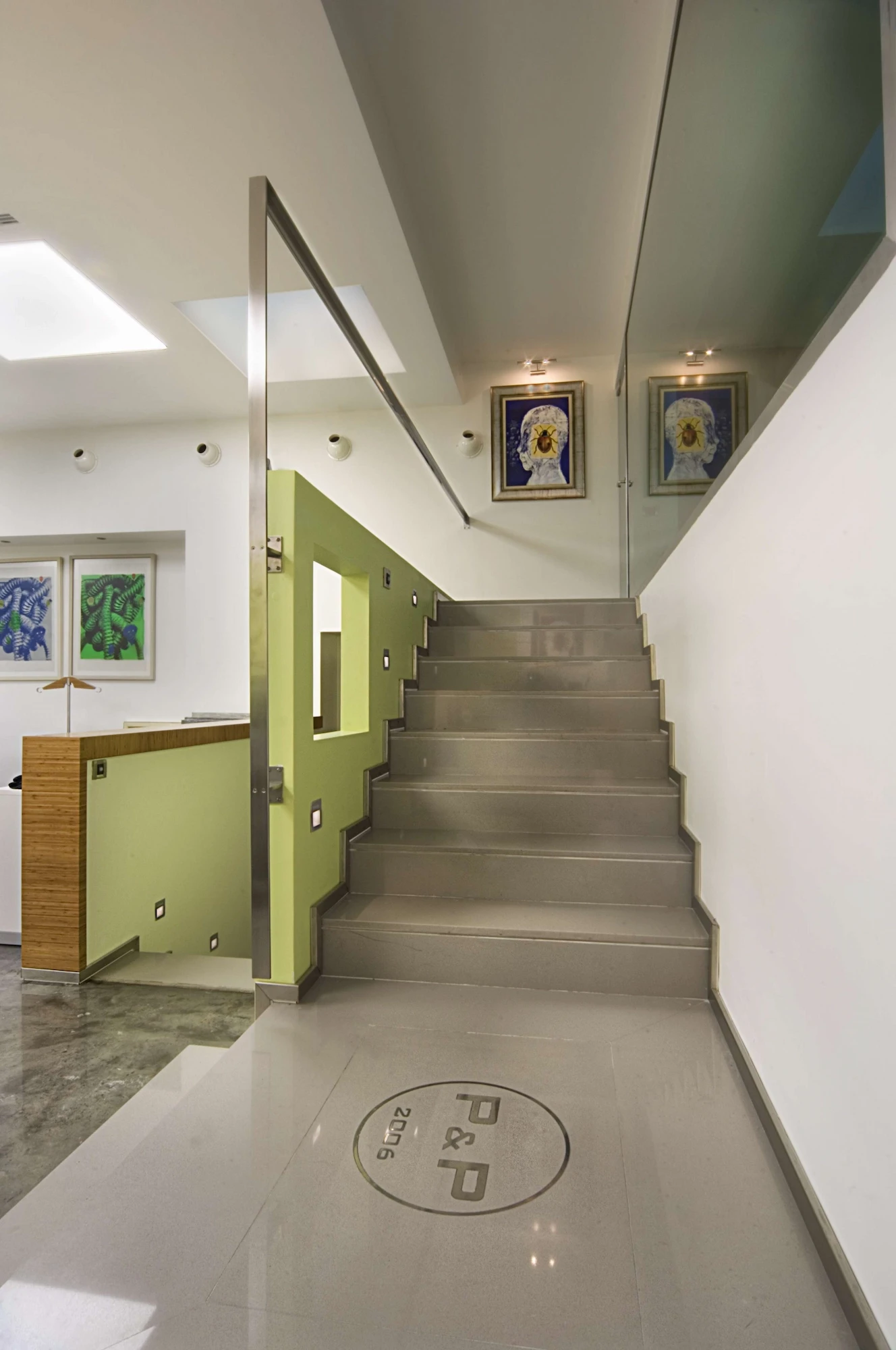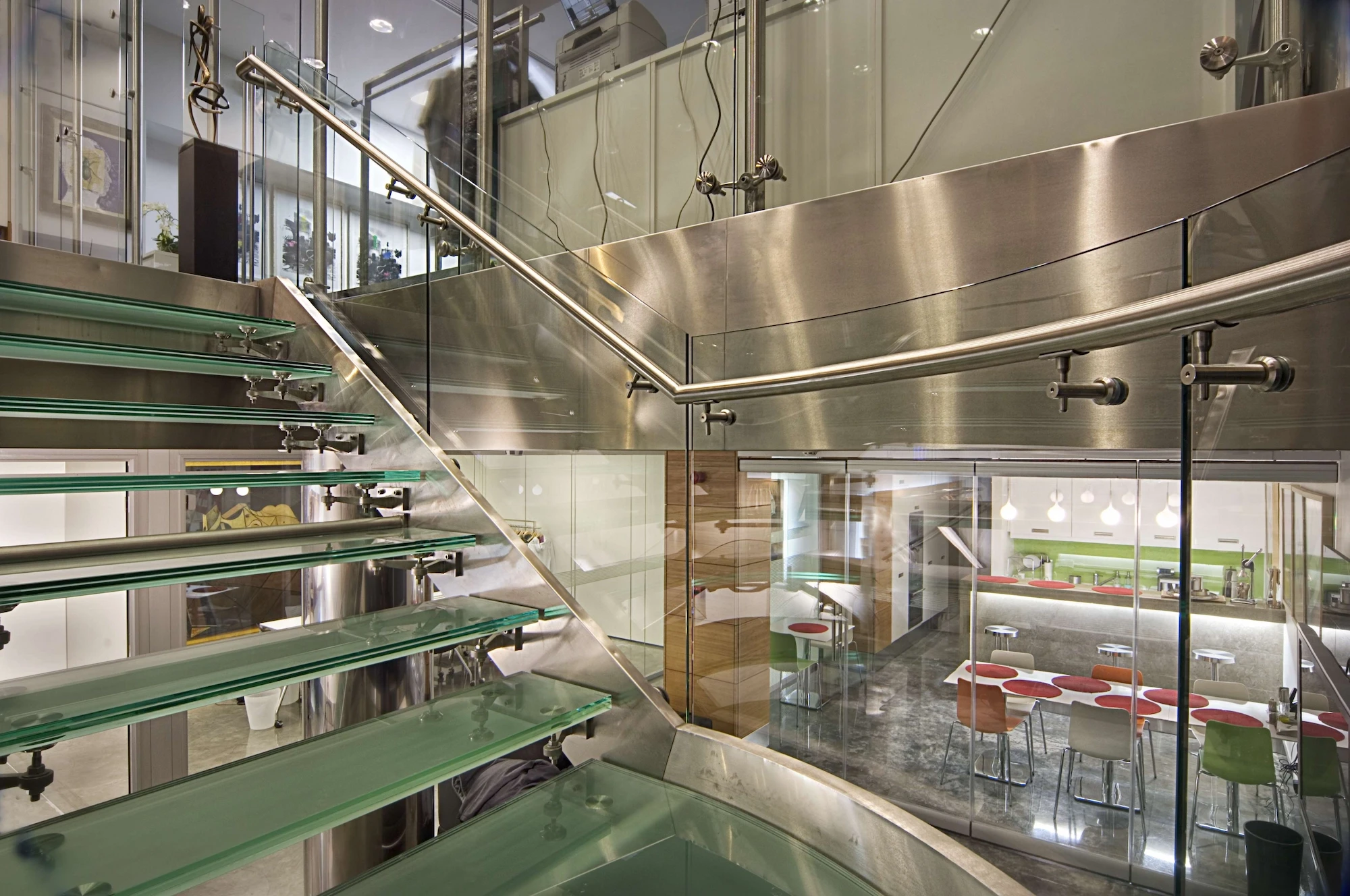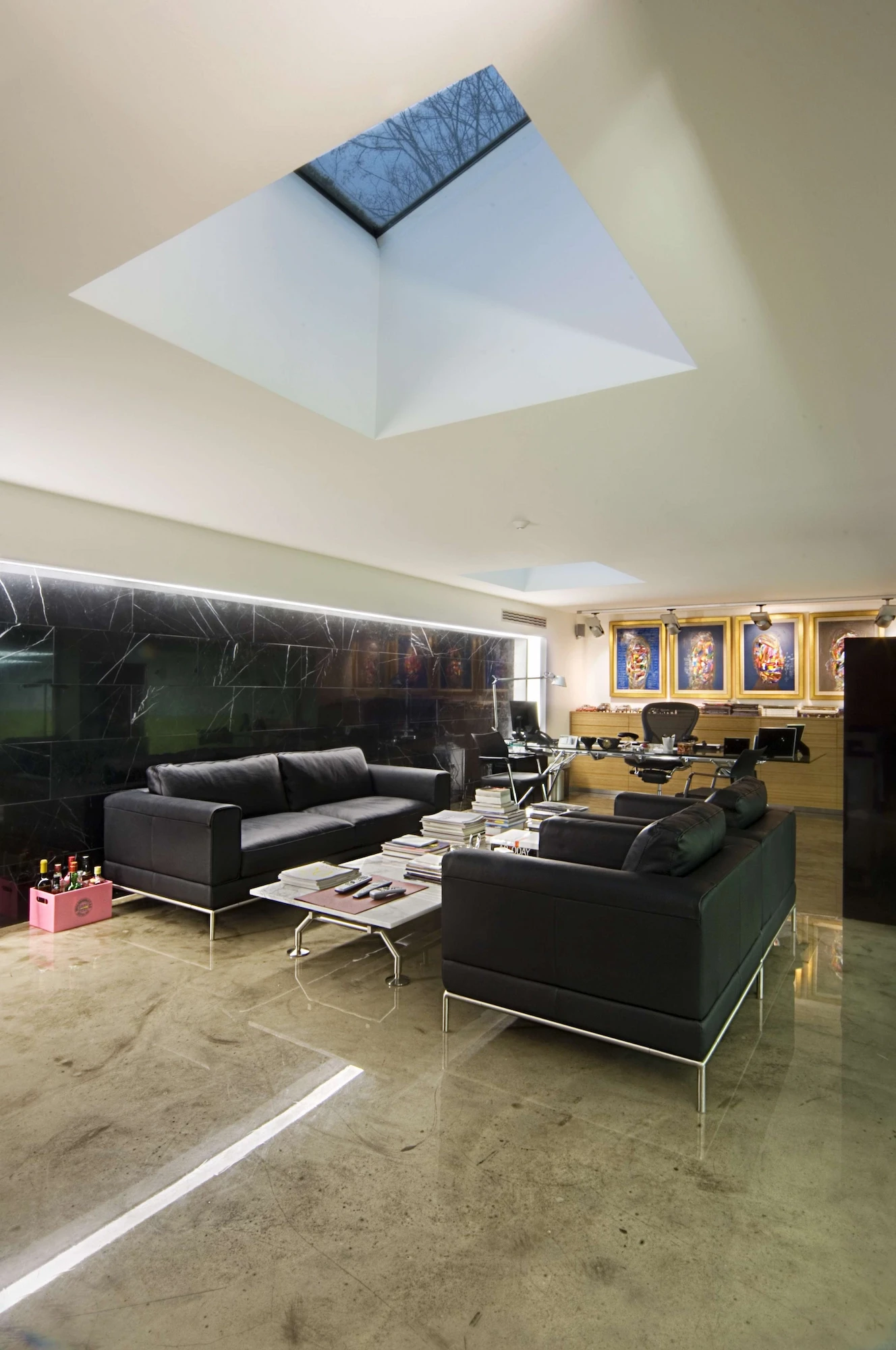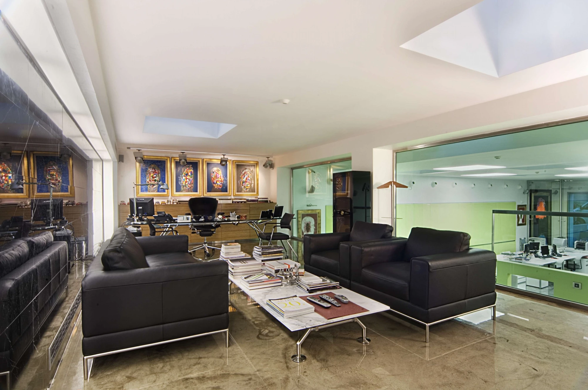 The building which was an old bank branch is located on Barbaros Avenue. The building was transformed into an open-plan working area, and meeting rooms and social spaces were planned. The client’s request to display his art collection unveiled a flexible and generous working and exhibiting space where work and exhibit functions are interpreted in a new manner. The openings on the roof and the transparent staircase connecting the ground and basement floors provide natural light to reach the dark spots of the lower floors.