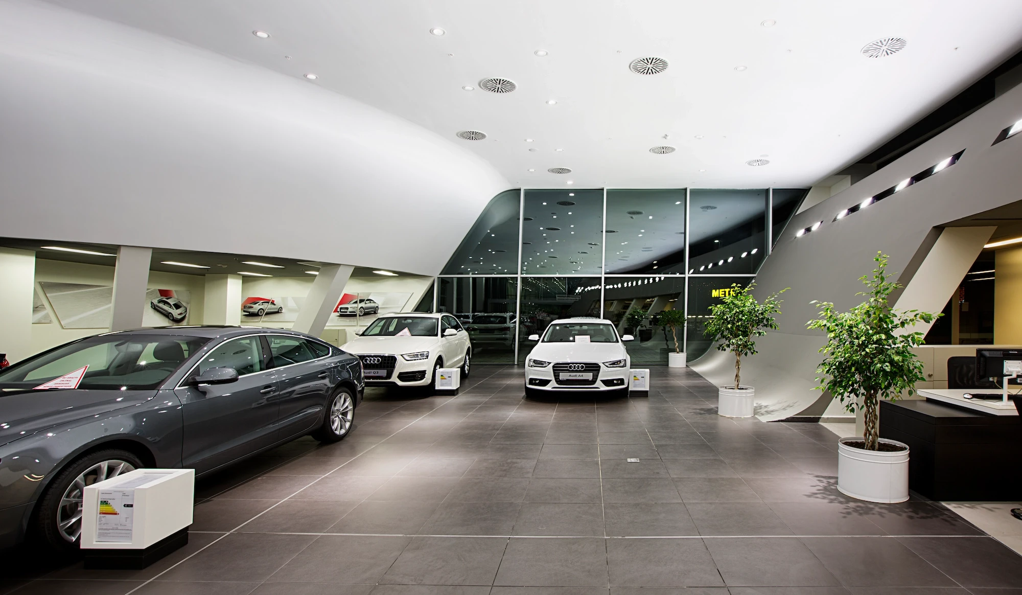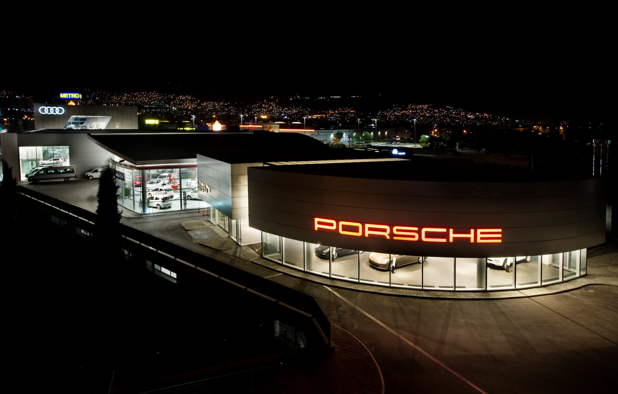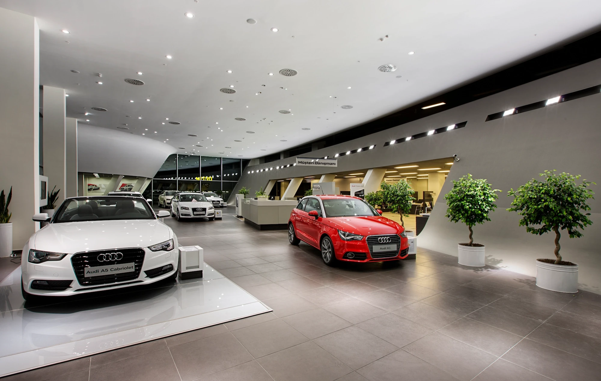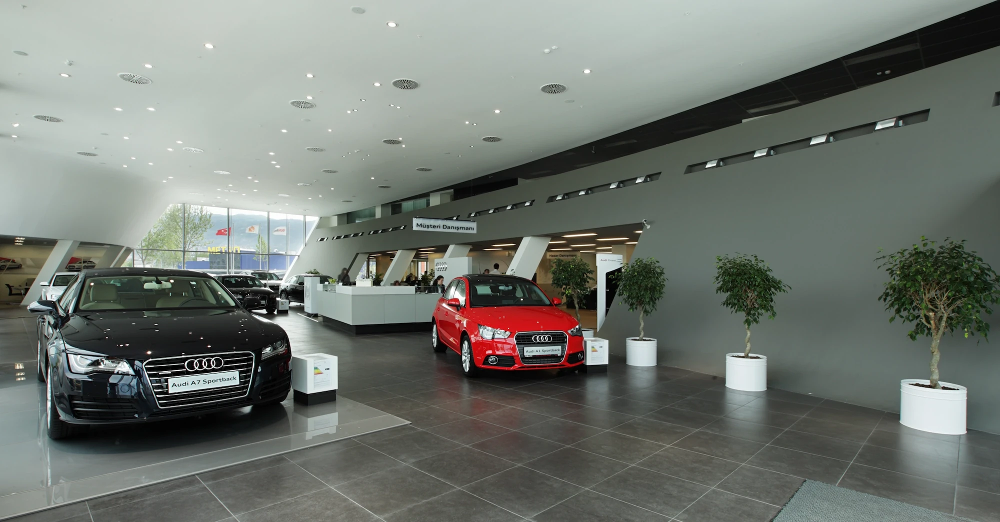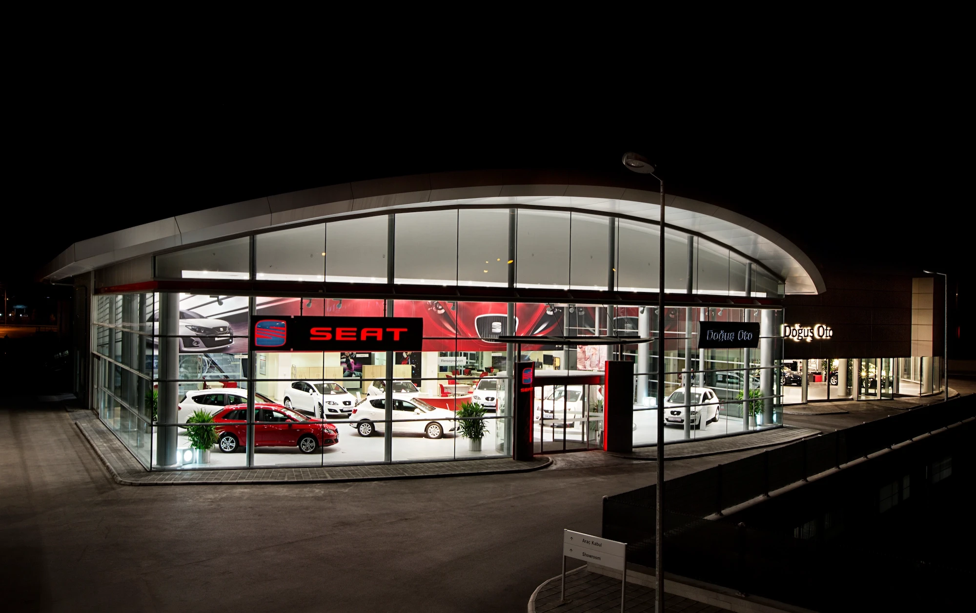 Doğuş Oto Bursa Facilities, located next to the Bursa - Yalova inter-city road, were designed as a common synergy area where 4 brands with different corporate identities come together in the same campus. Vehicle display structures are planned on the platform, and common service areas are planned below so that the perception of the environment is at the highest level.
