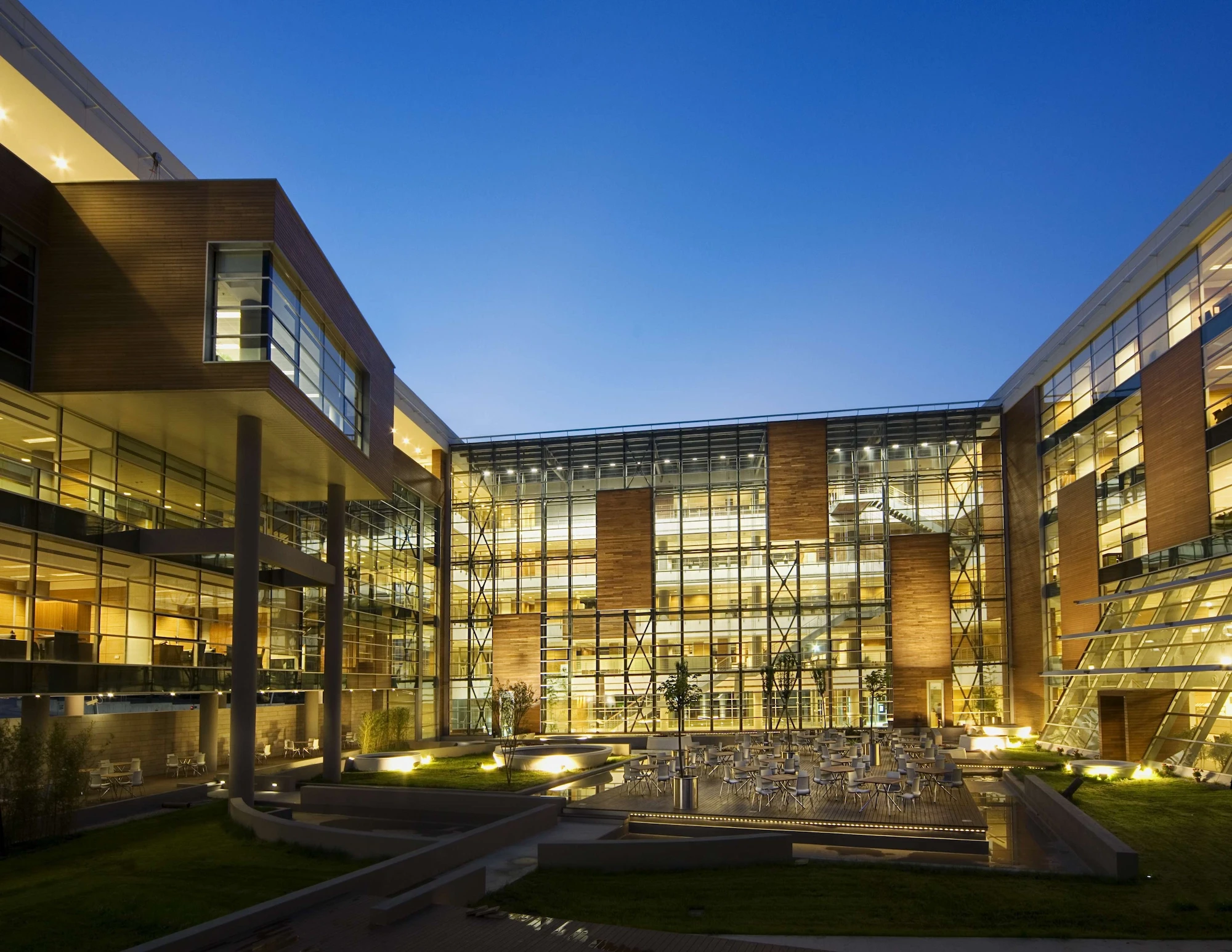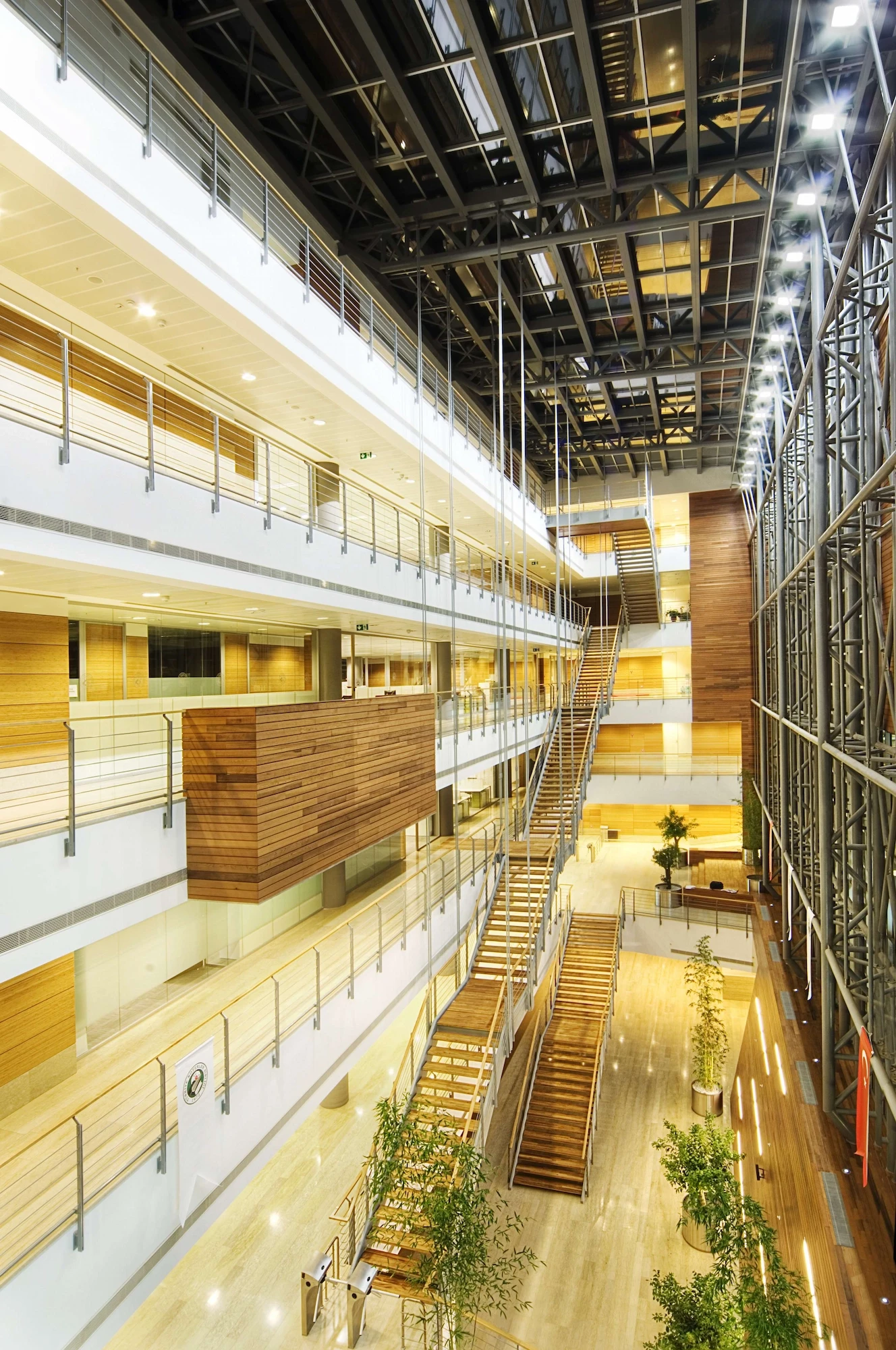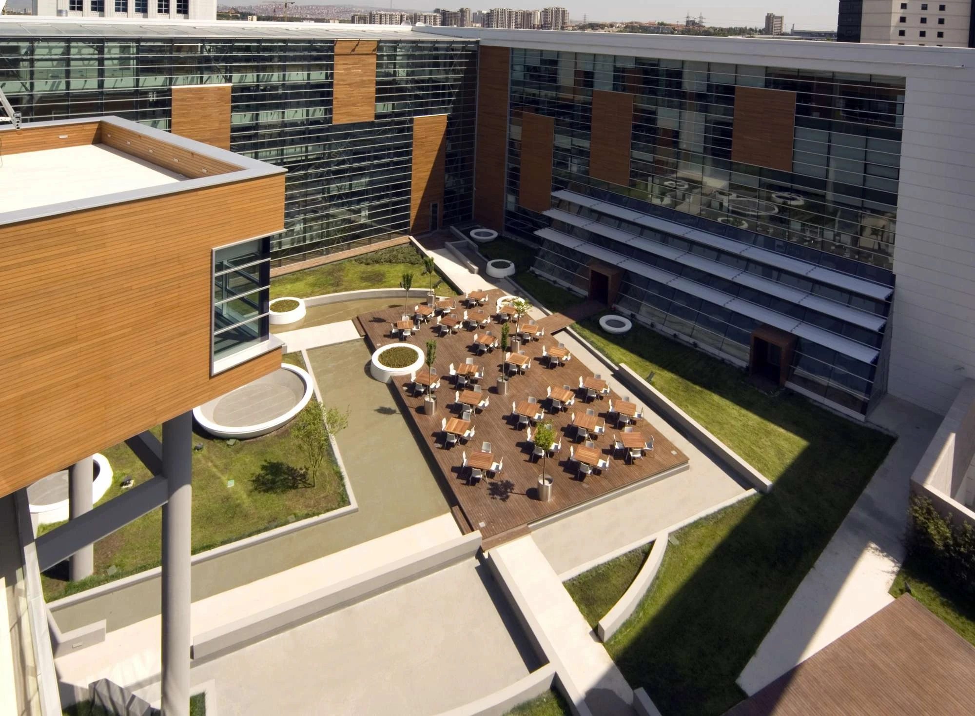 The building is a modern interpretation of the development of traditional caravansary schema which provides a contemporary and efficient working environment for the users. Since the courtyard can be perceived wherever you are in the building, it makes it easier to position yourself and find your way within the building.