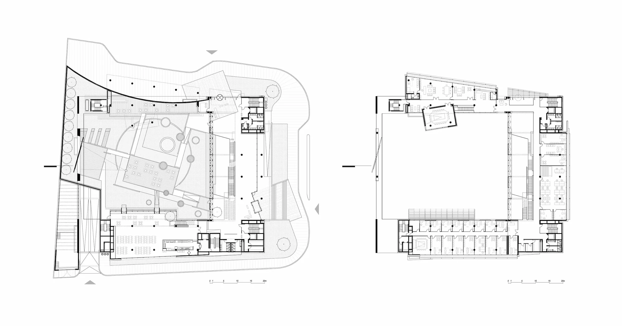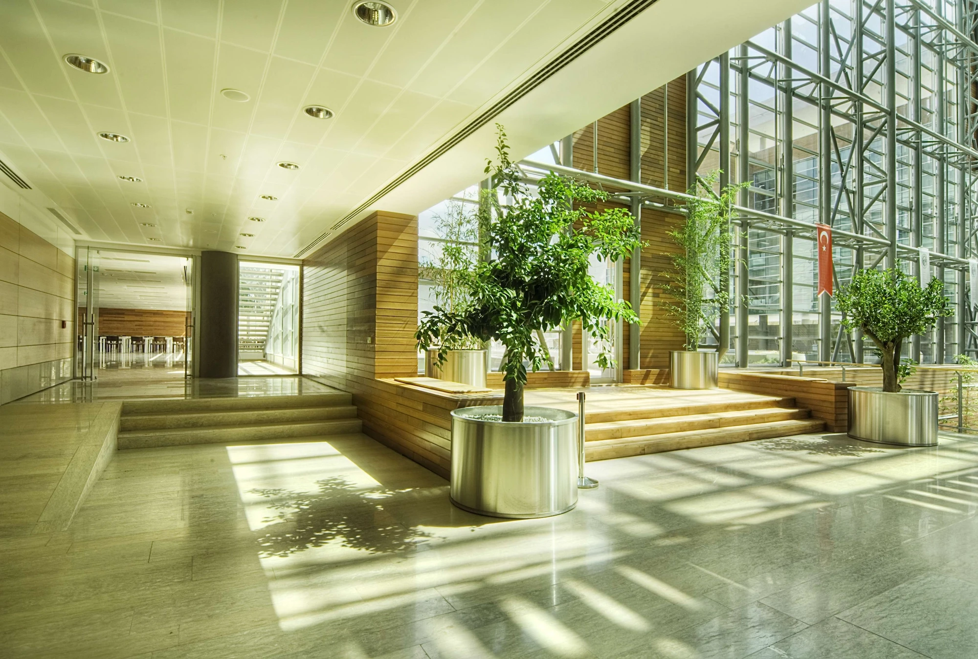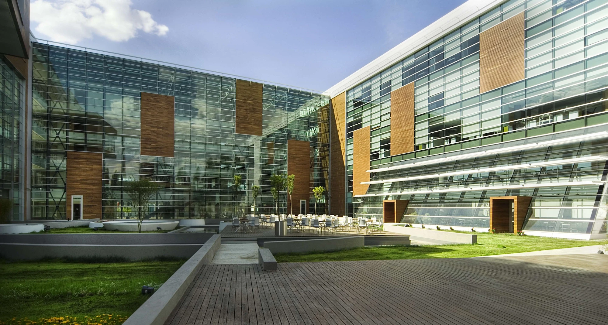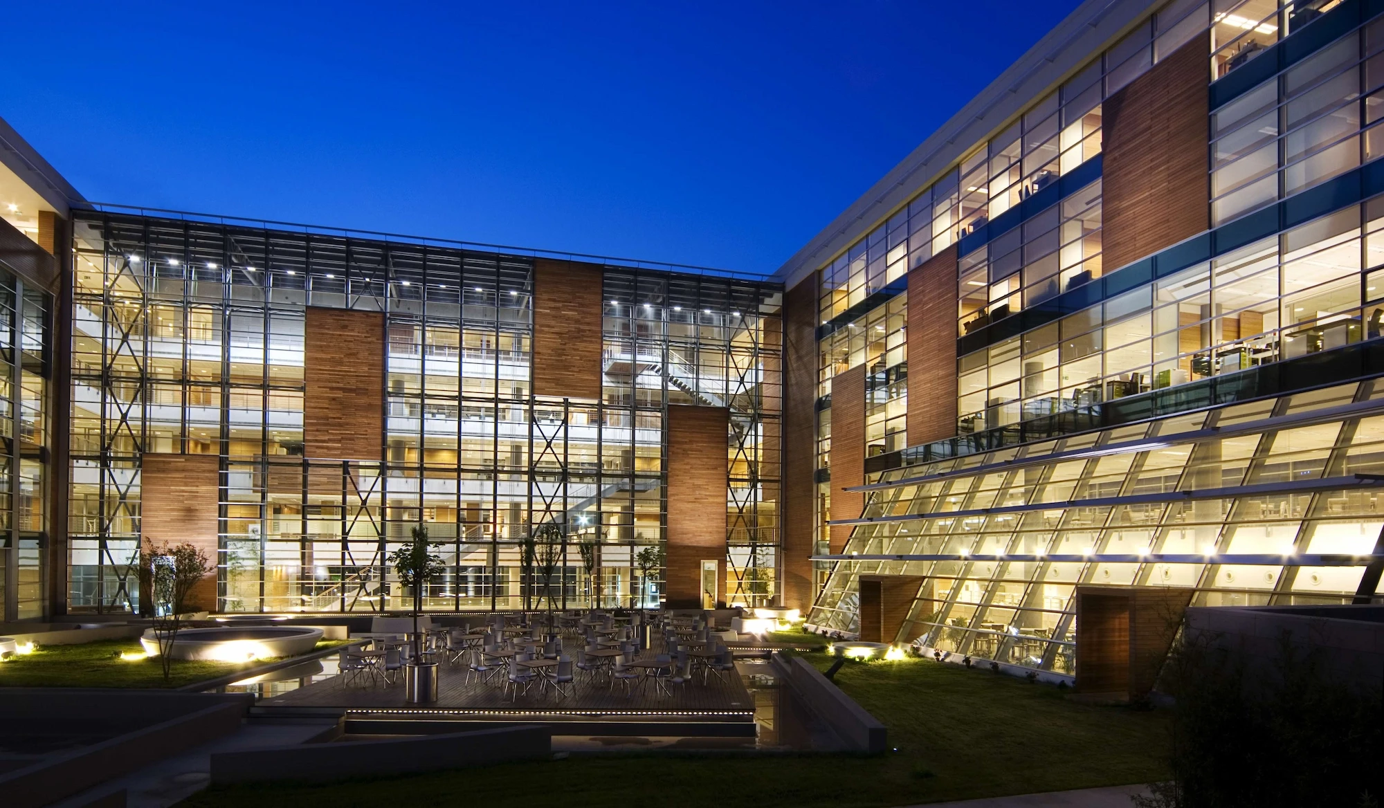 The building is a modern interpretation of the development of traditional caravansary schema which provides a contemporary and efficient working environment for the users. Since the courtyard can be perceived wherever you are in the building, it makes it easier to position yourself and find your way within the building.