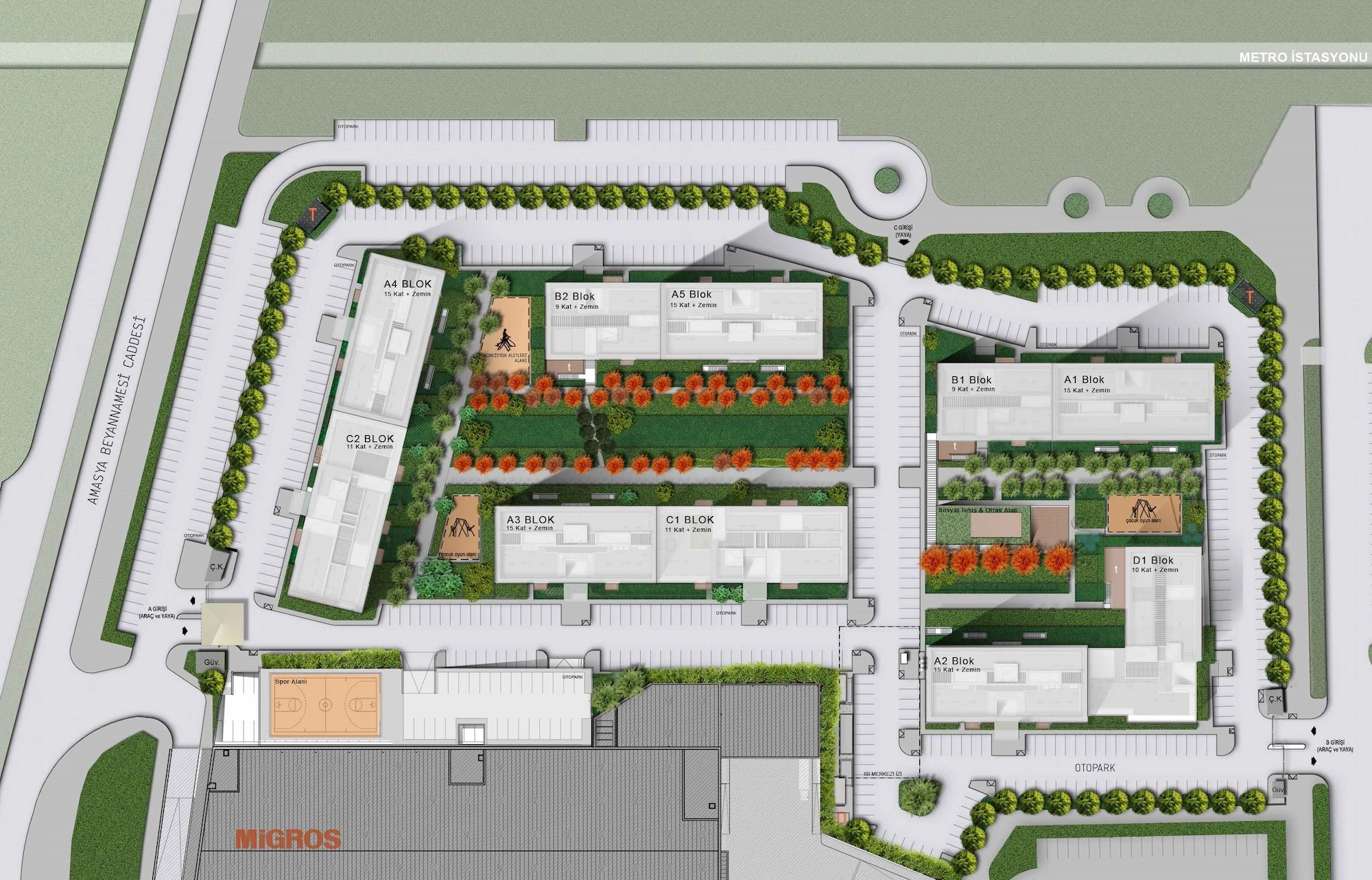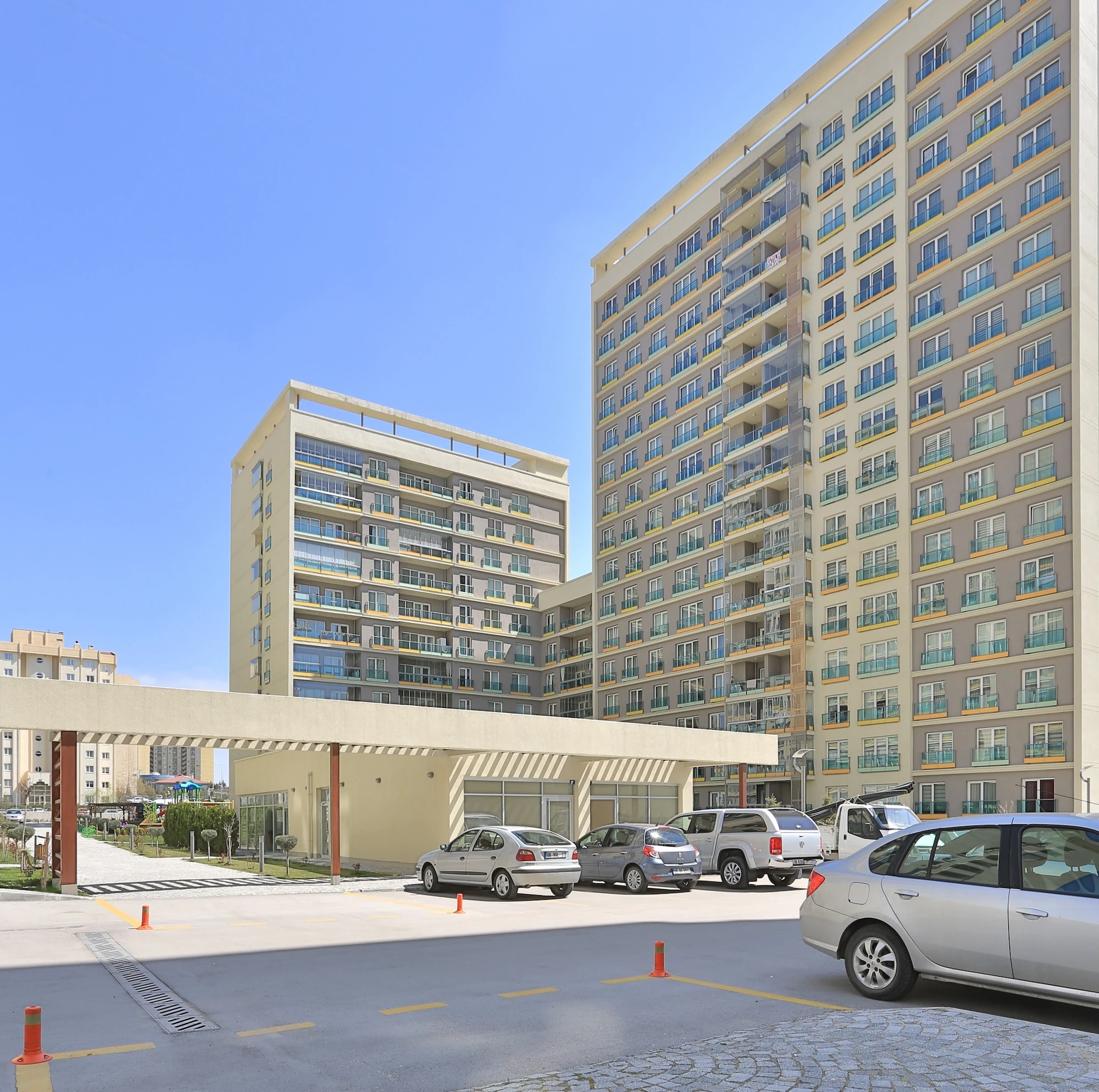 OYAK Eryaman Residences situated in Ankara’s planned expansion area, was planned around a main courtyard with communal facilities designed to contribute to the social lives of the occupants. The aim was that this should be a group of buildings with easy access, whose social facilities and transitional spaces offered diverse opportunities to users.