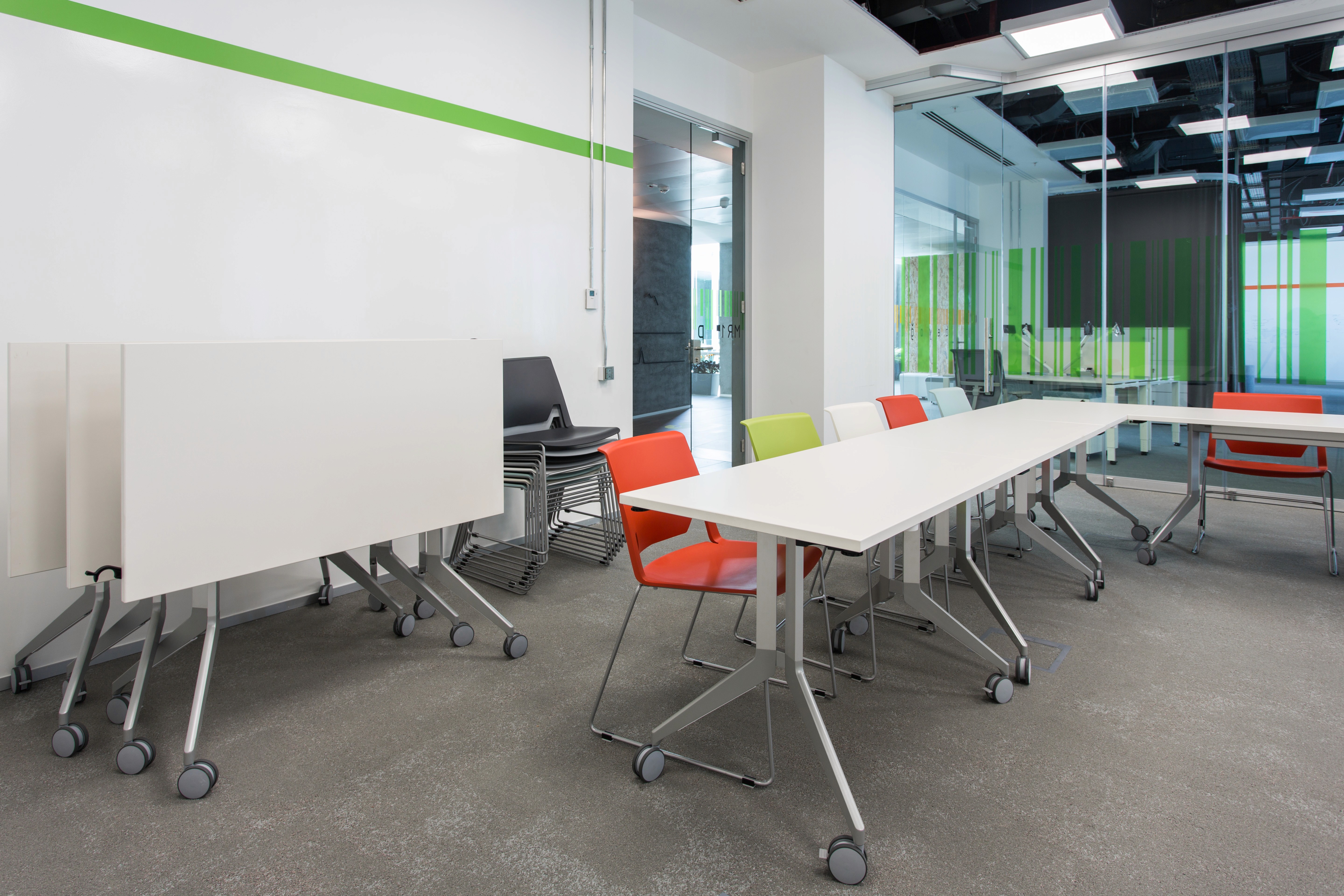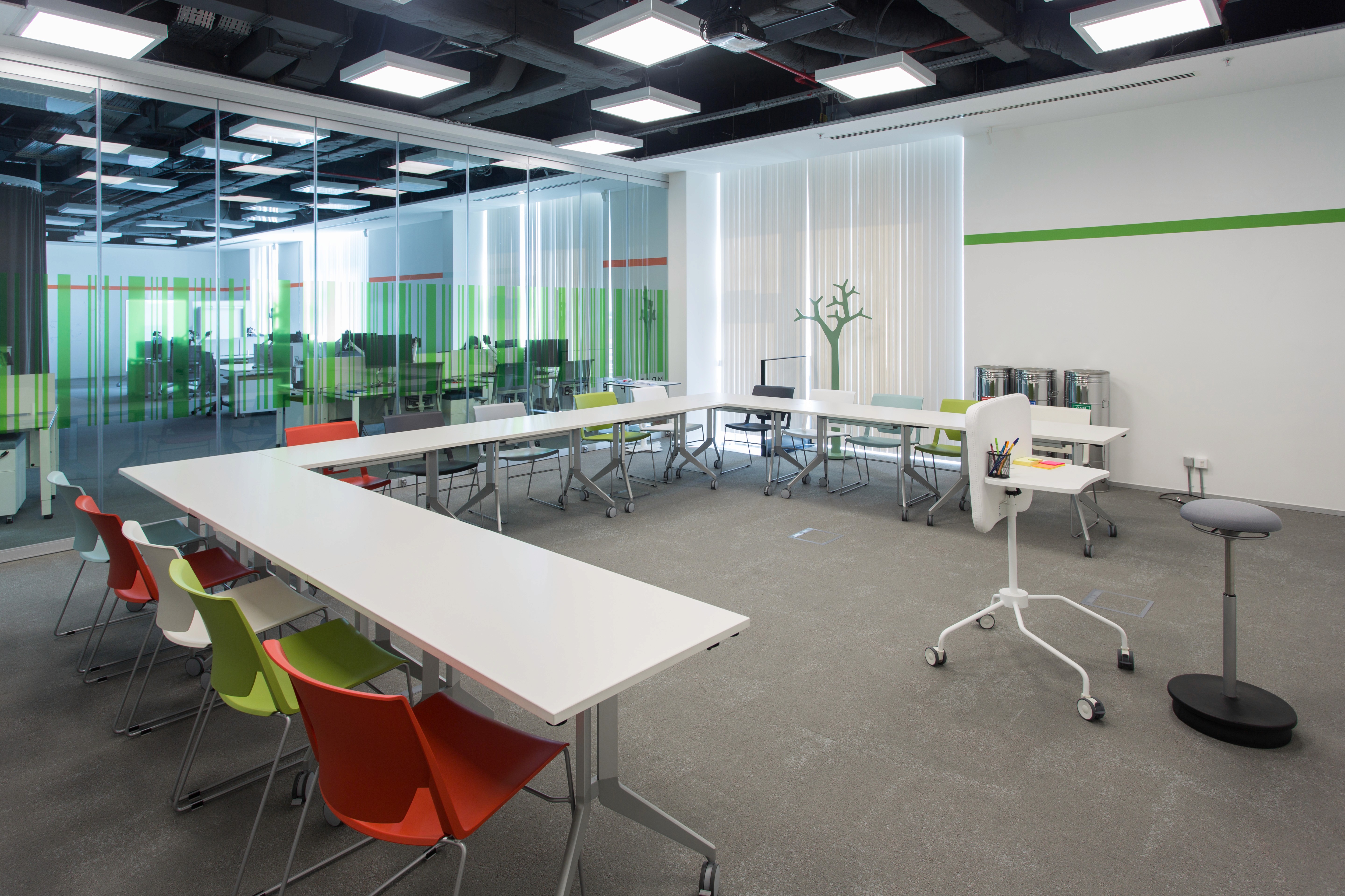Thanks to its flexible infrastructure and movable furniture, the project area enables users to completely reevaluate and reorganise their approaches, strategies, and methods every day.