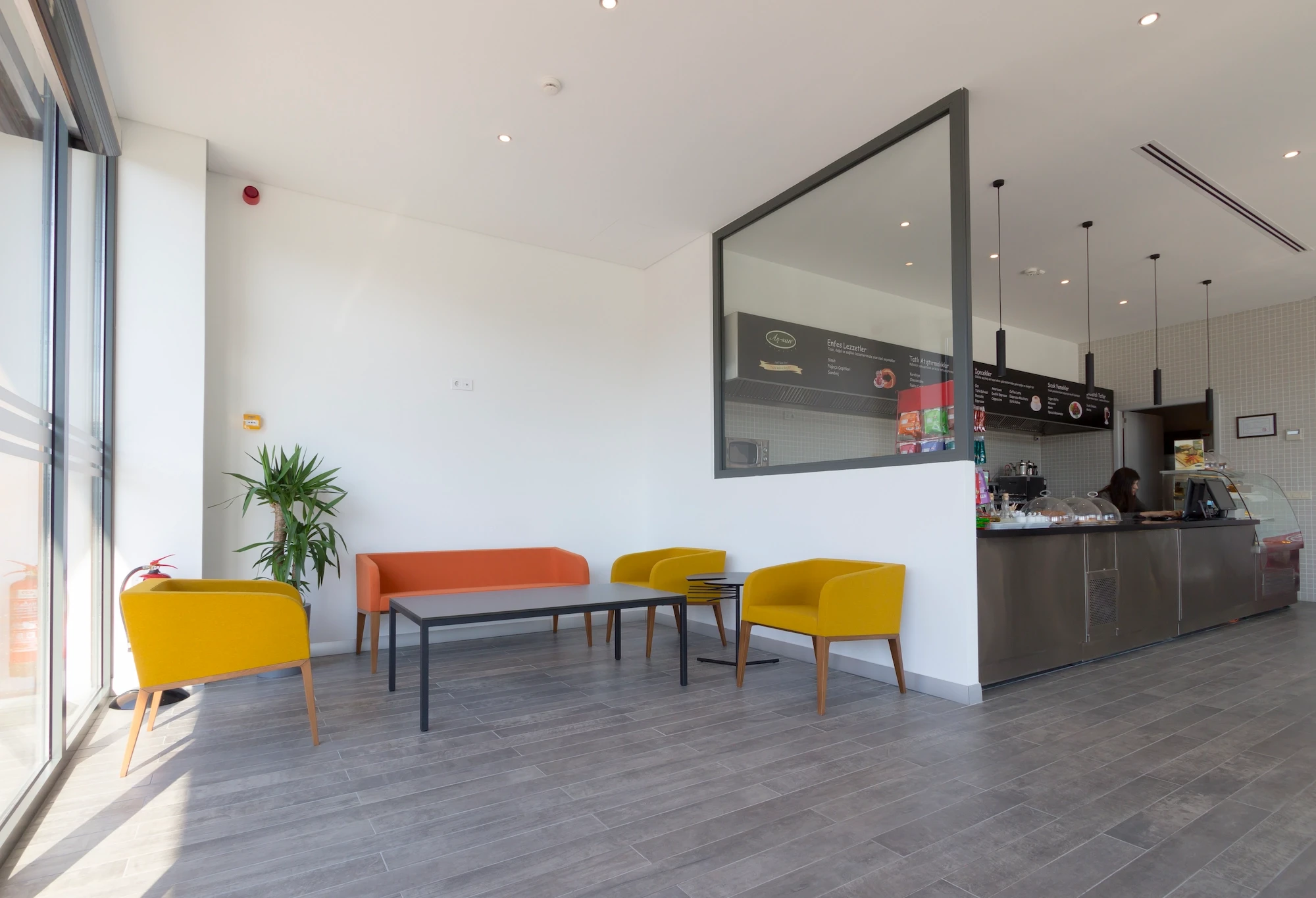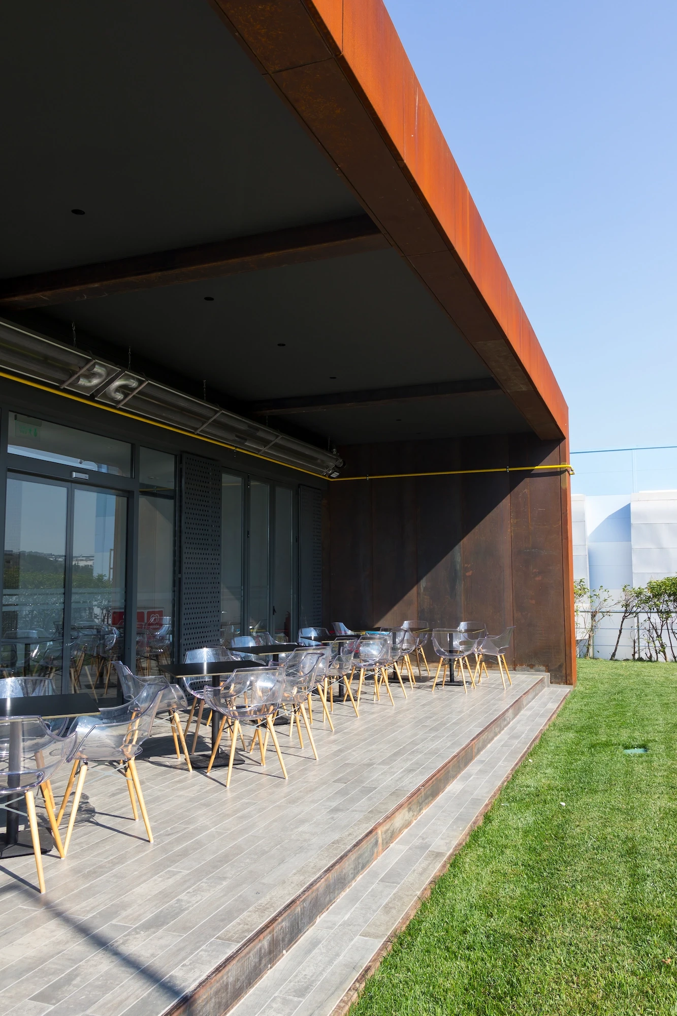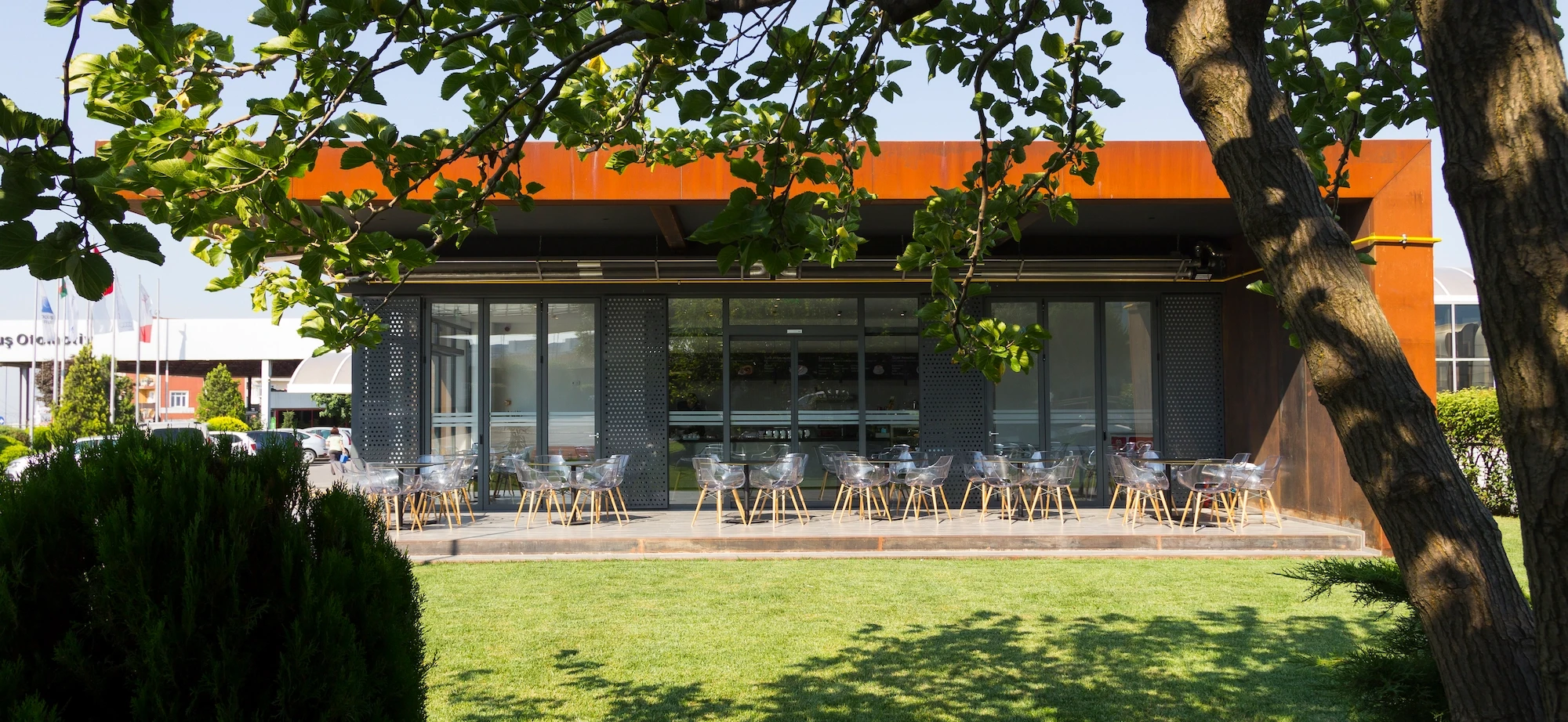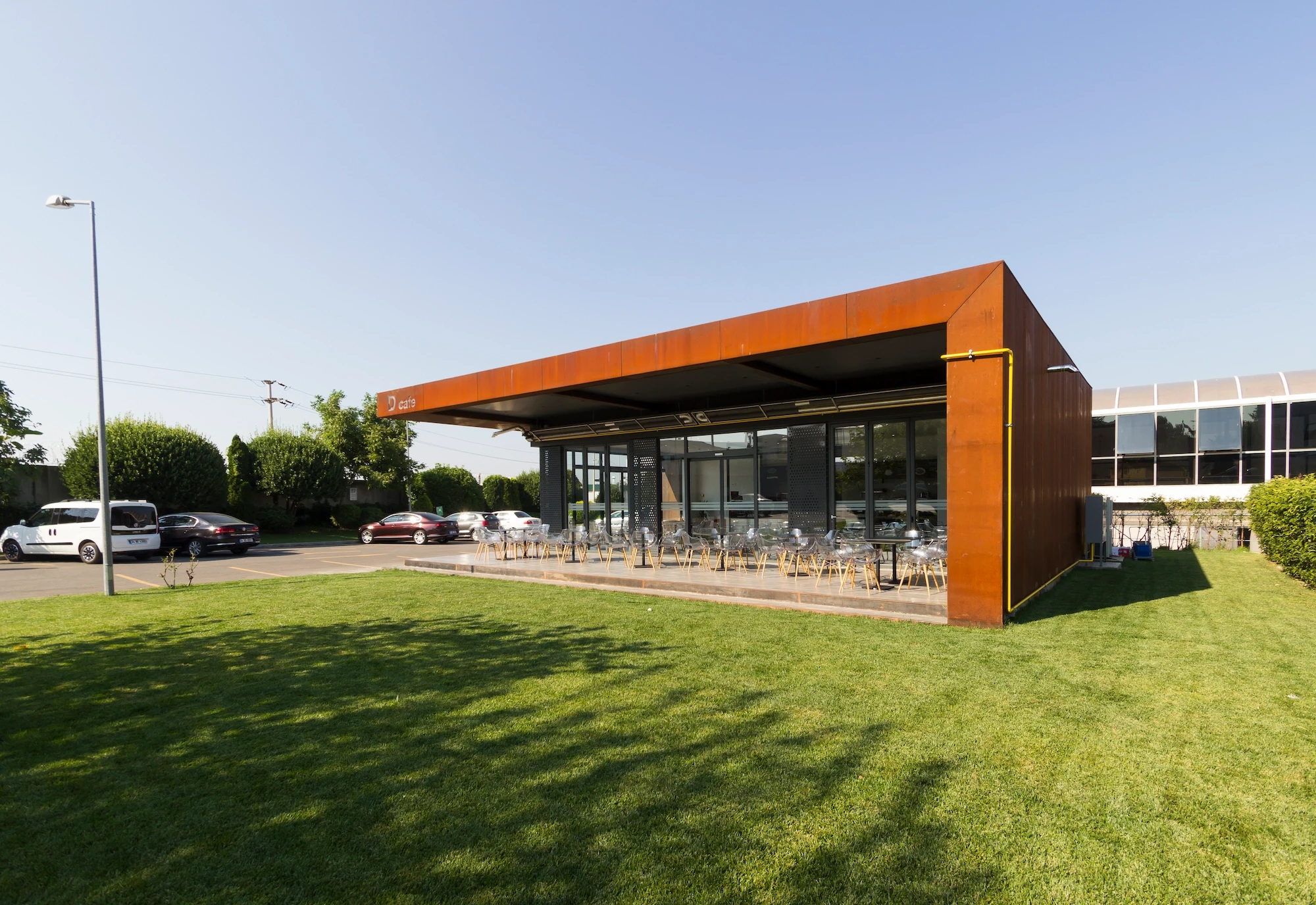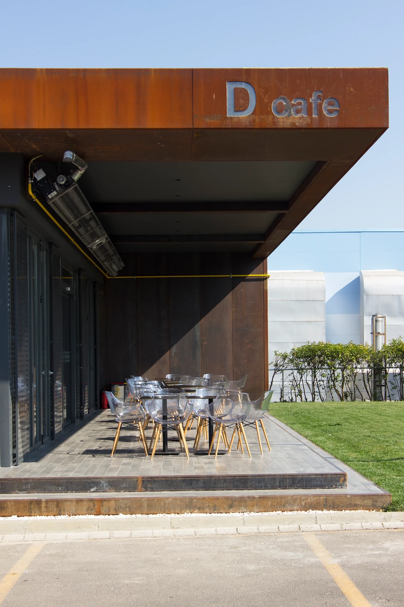 D Cafe is designed under the concept of providing a social interaction space for employees of the corporate campus of Doğuş Automotive in Sekerpınar. While simplicity, human scale, and transparency are inviting the users to explore, it softens the solid impression by integrating building with landscape and offers a humble communication medium.
