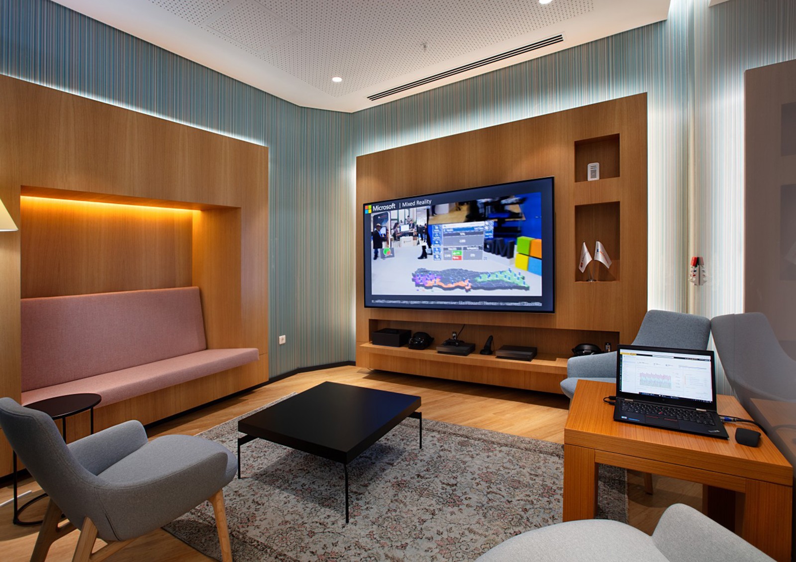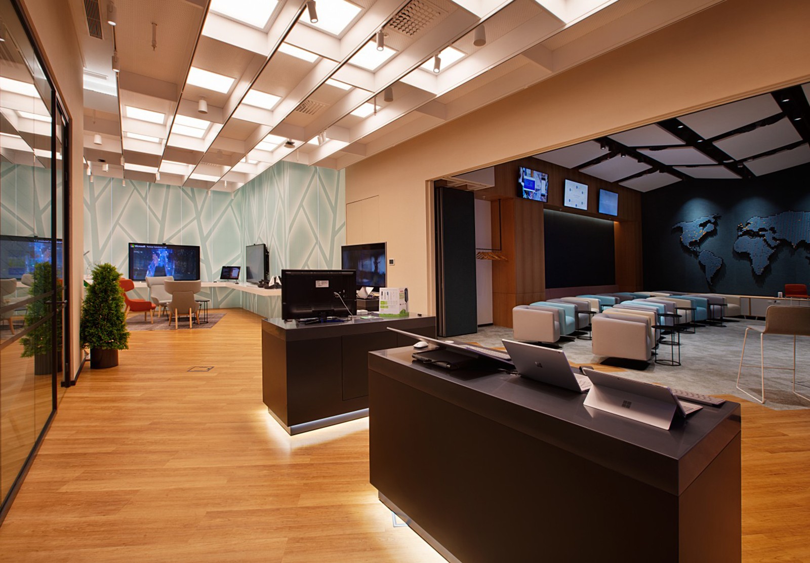 The main goal of the office design is to present the products and services of Microsoft, the world’s leading Software Company to their users with an innovative theme. The belief that an effect similar to the effect of nature on human health and happiness can be experienced in the relationship between technology and human beings has been one of the concepts derived from the design, and the continuity of this belief is reflected in the space.