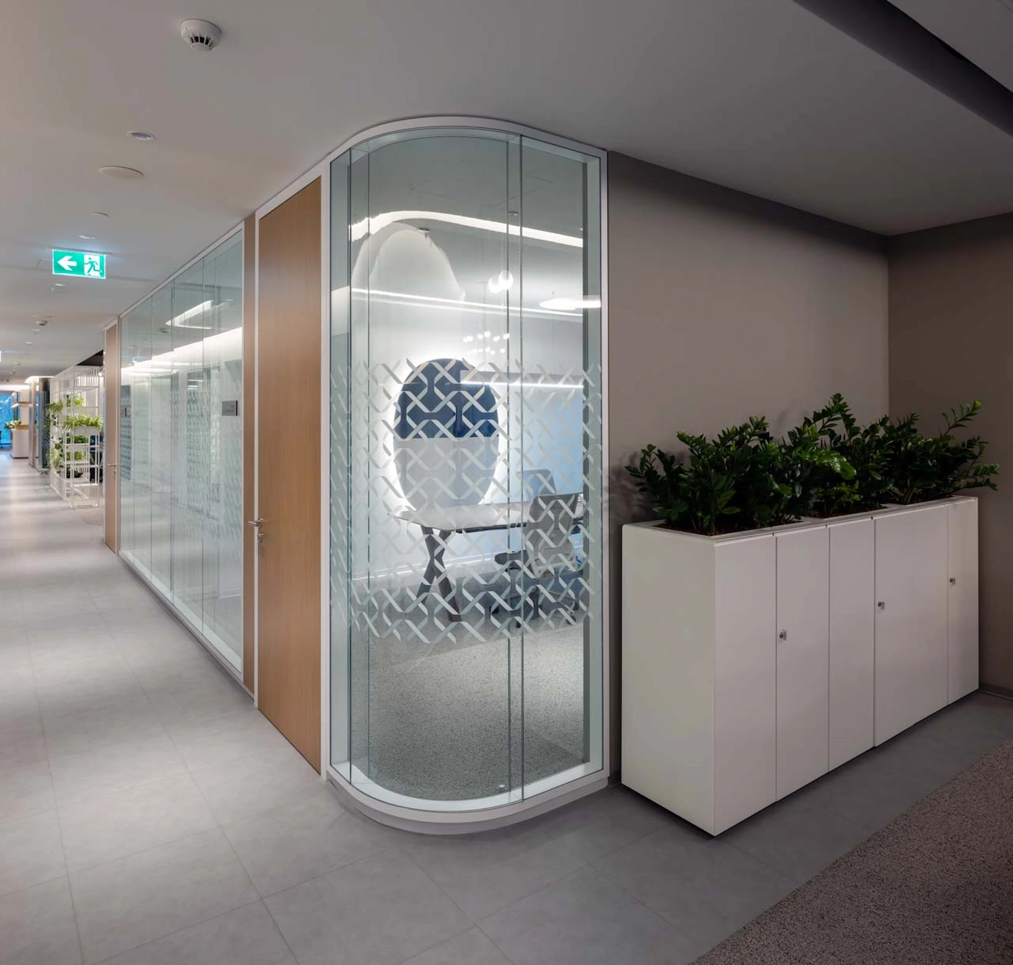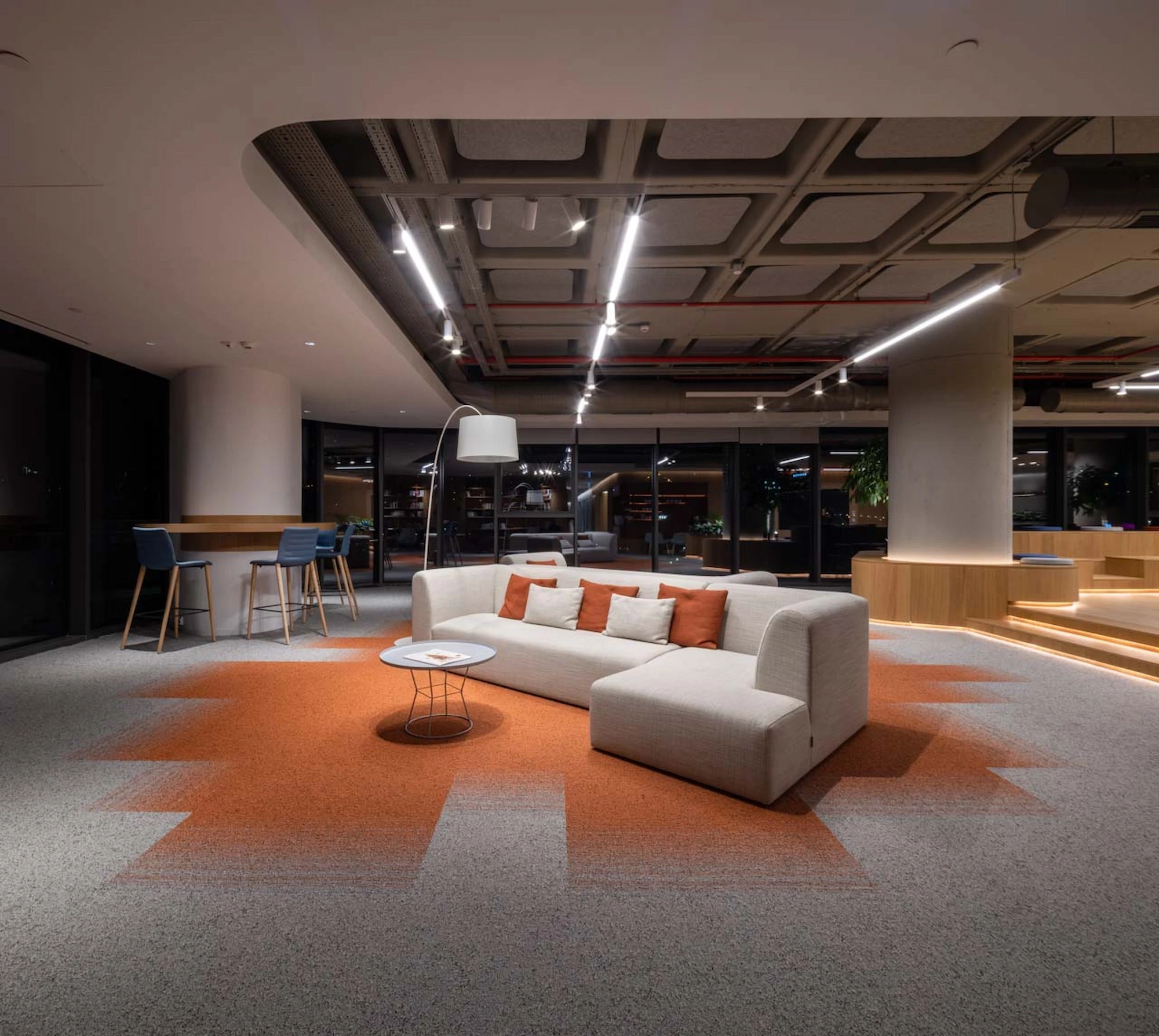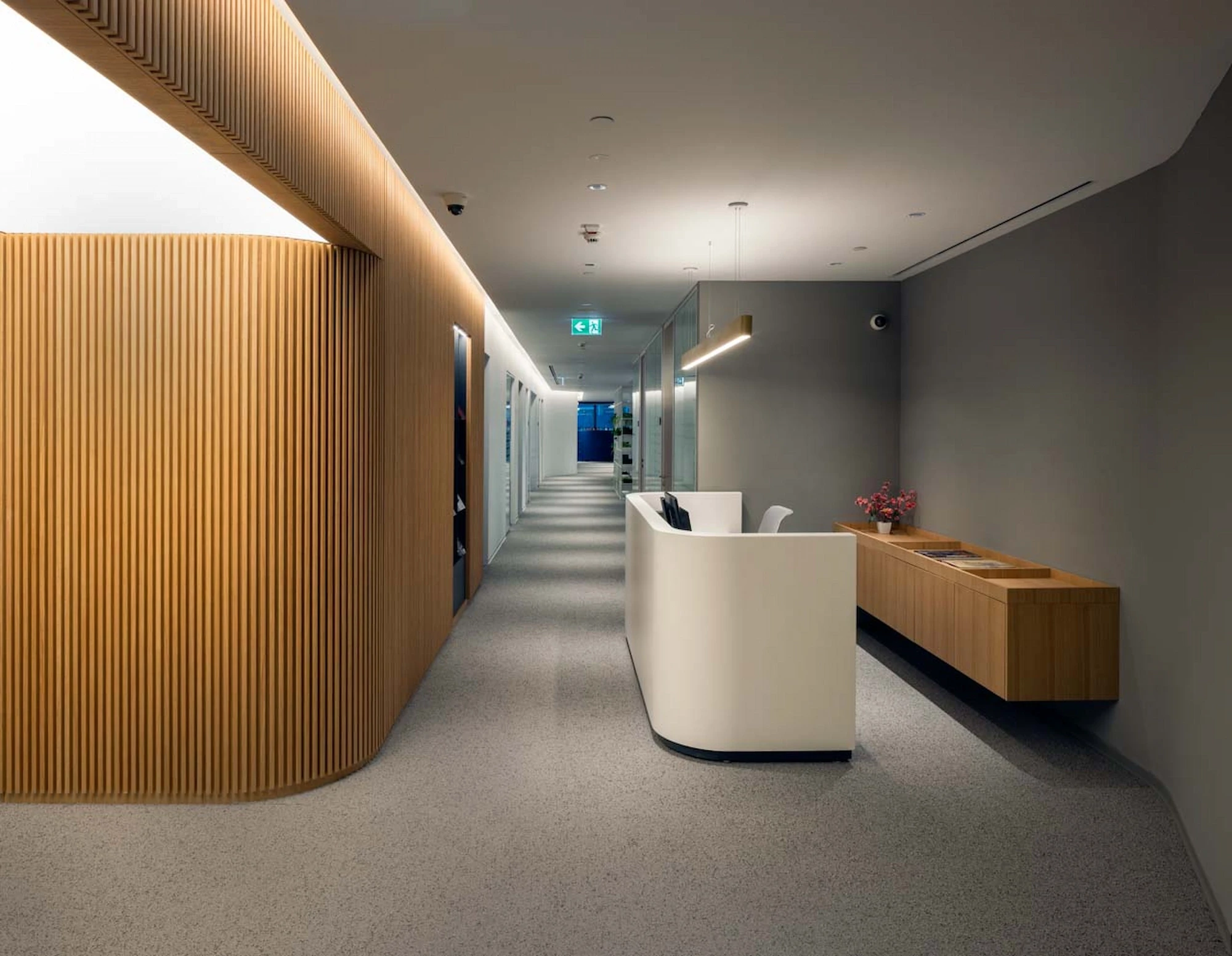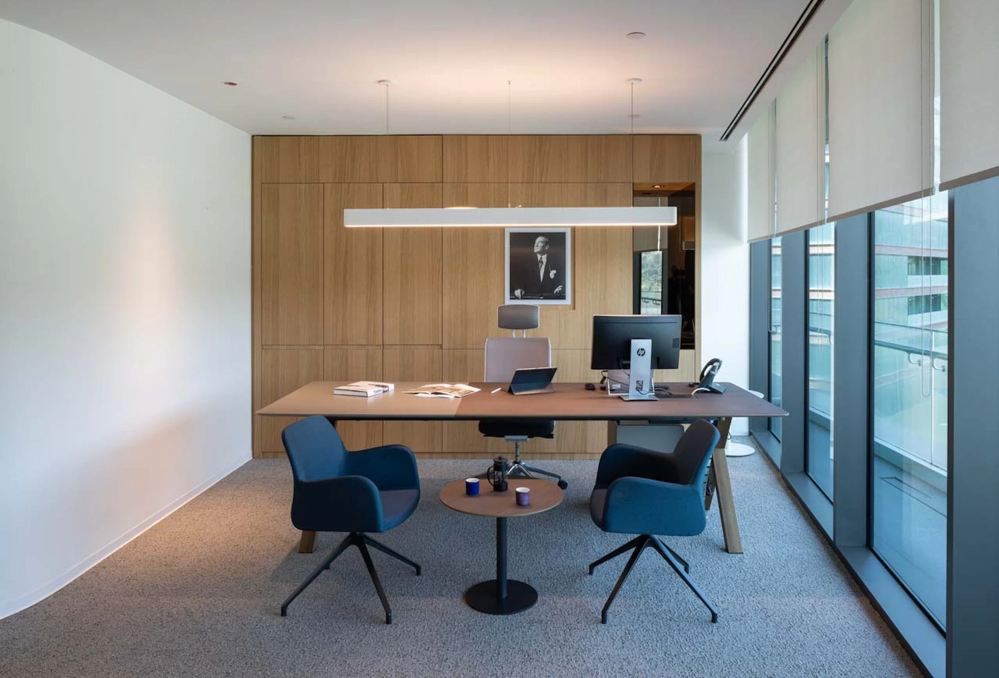 The office is on the fifth floor and has a panaromic view of city and nature. In order to reflect the corporate identity, design language has been discussed in details with the shareholders. The main purpose was to create an efficient workspace with flexible working areas, a strong digital aspect and the sense of biophilic design.