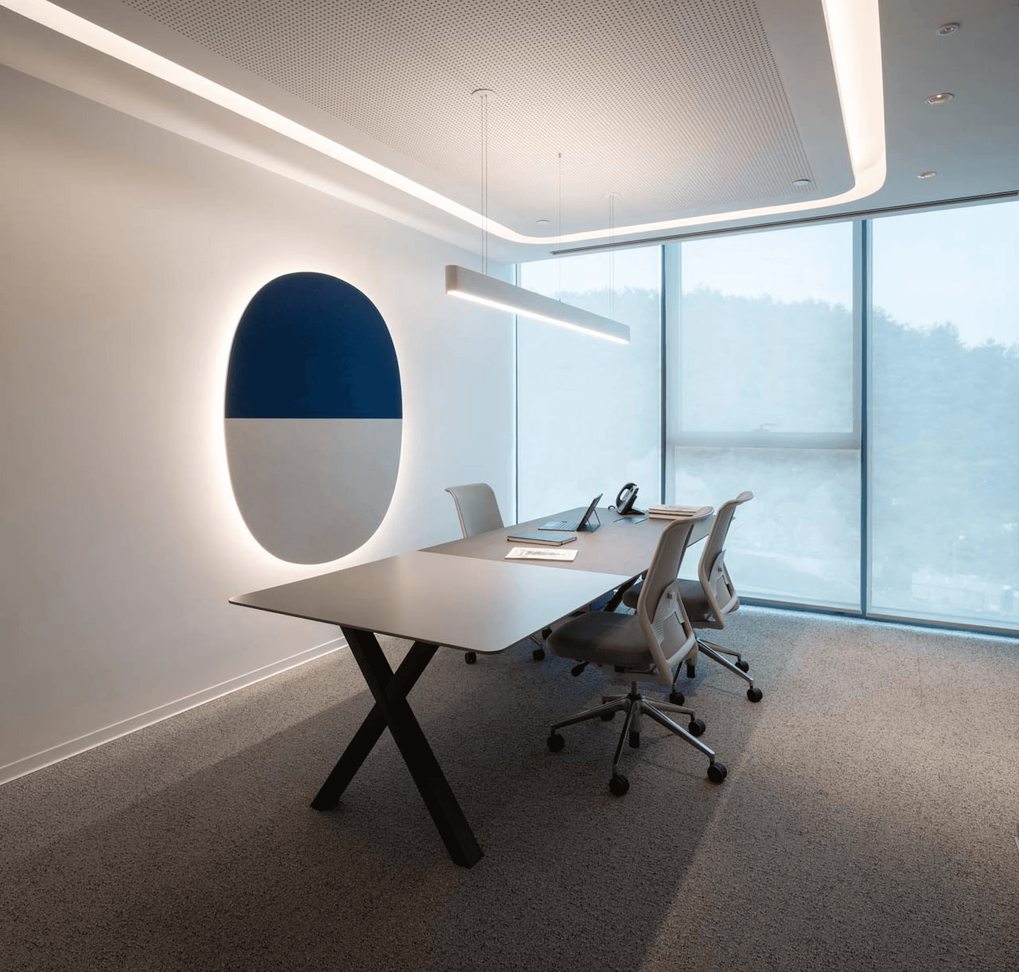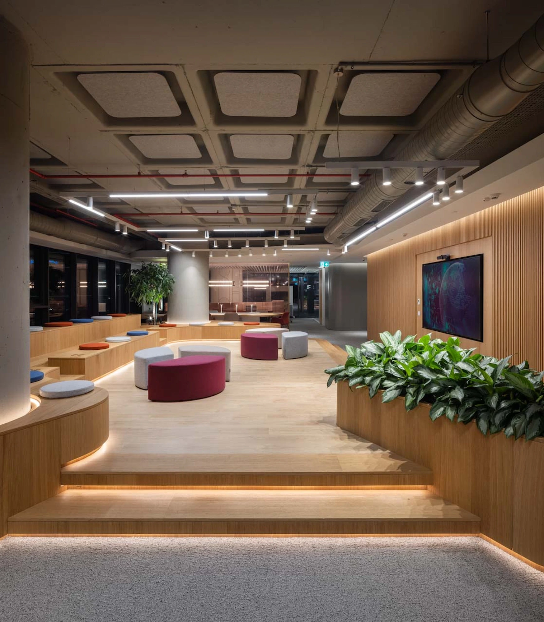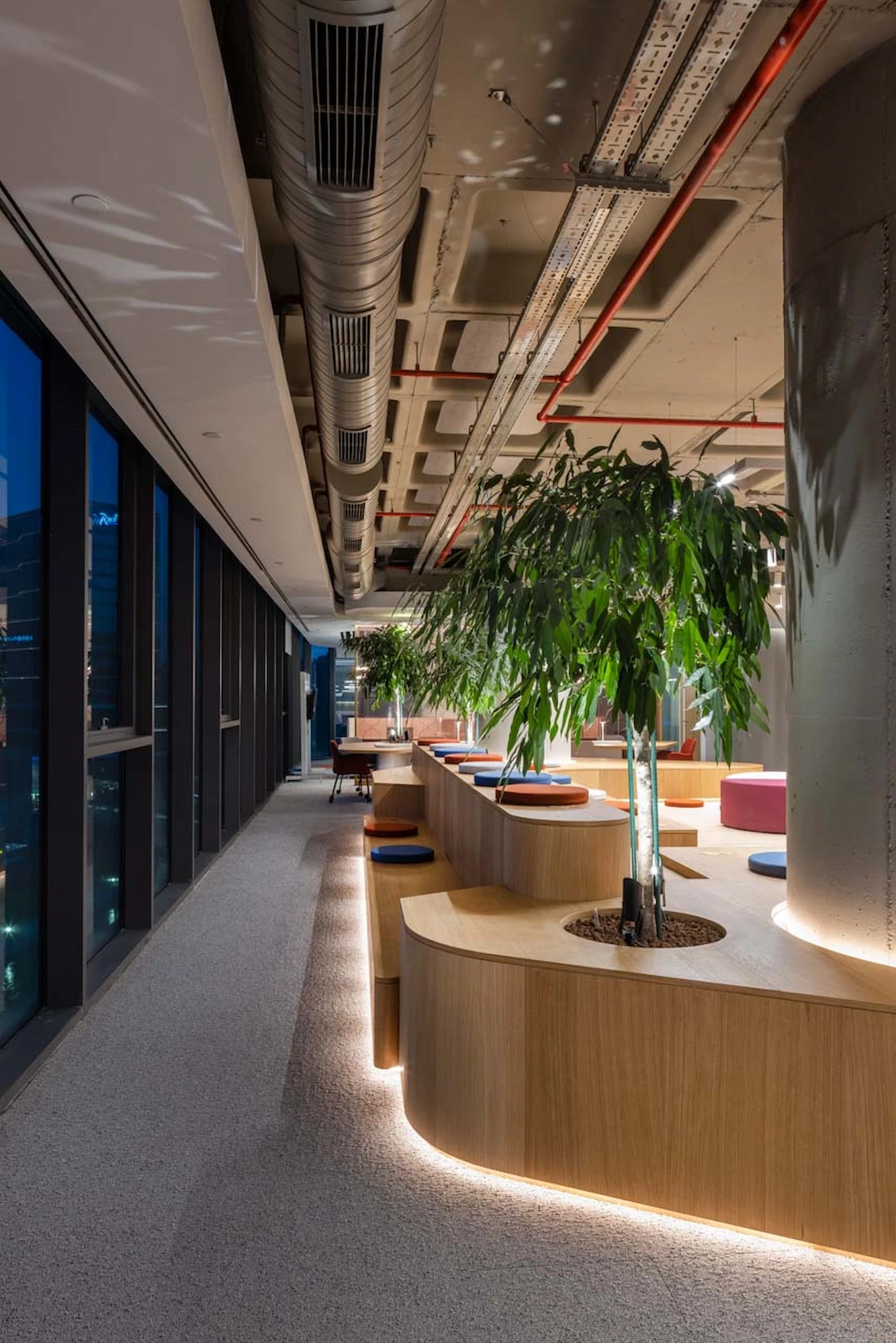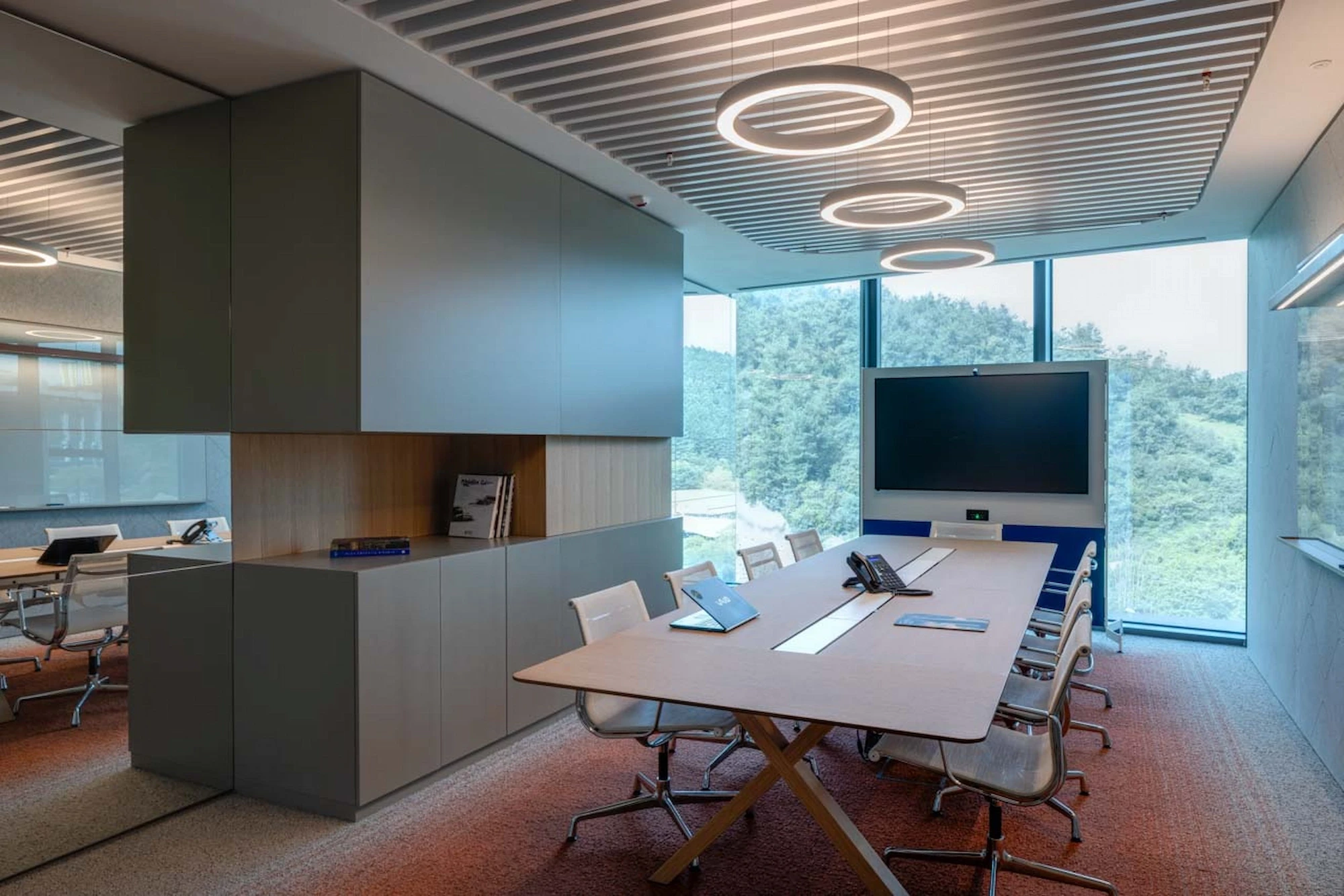 The office is on the fifth floor and has a panaromic view of city and nature. In order to reflect the corporate identity, design language has been discussed in details with the shareholders. The main purpose was to create an efficient workspace with flexible working areas, a strong digital aspect and the sense of biophilic design.