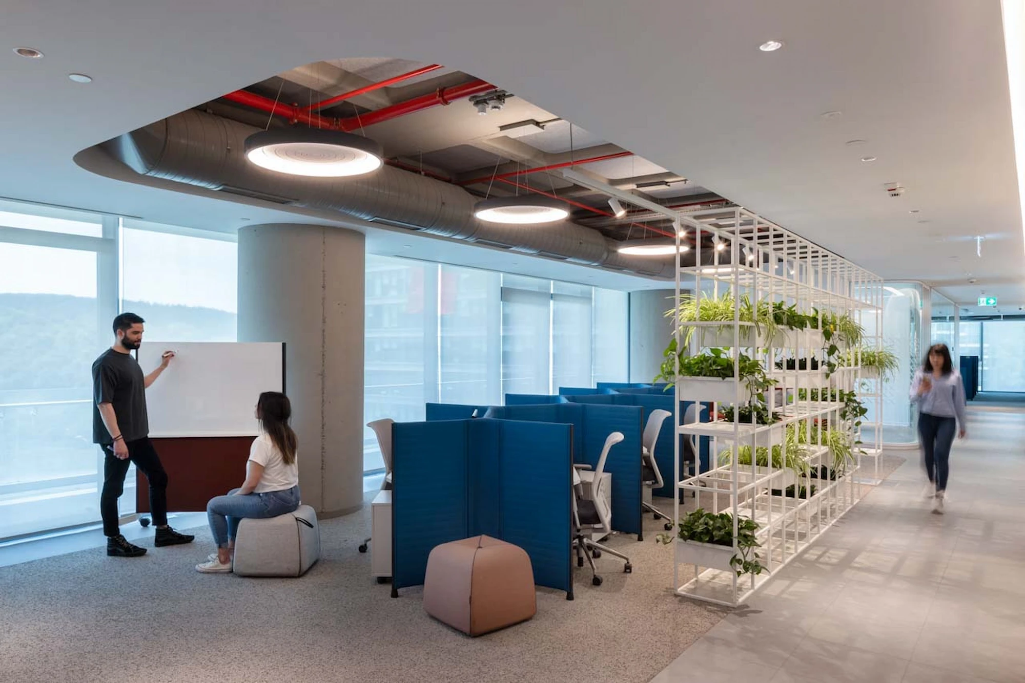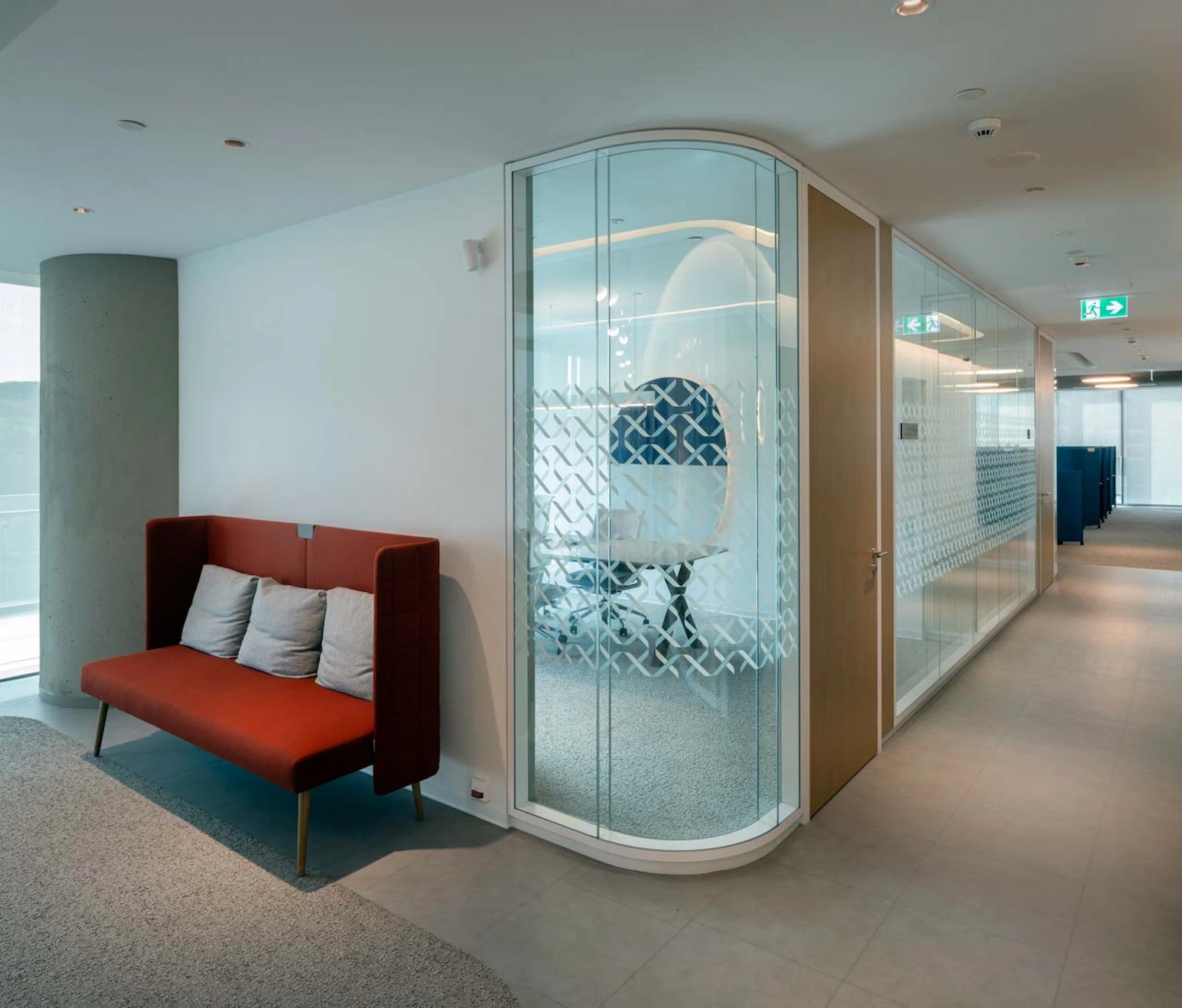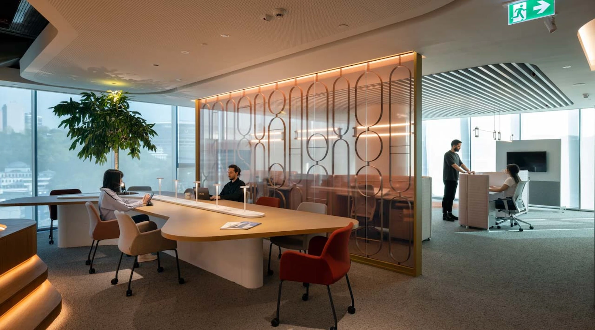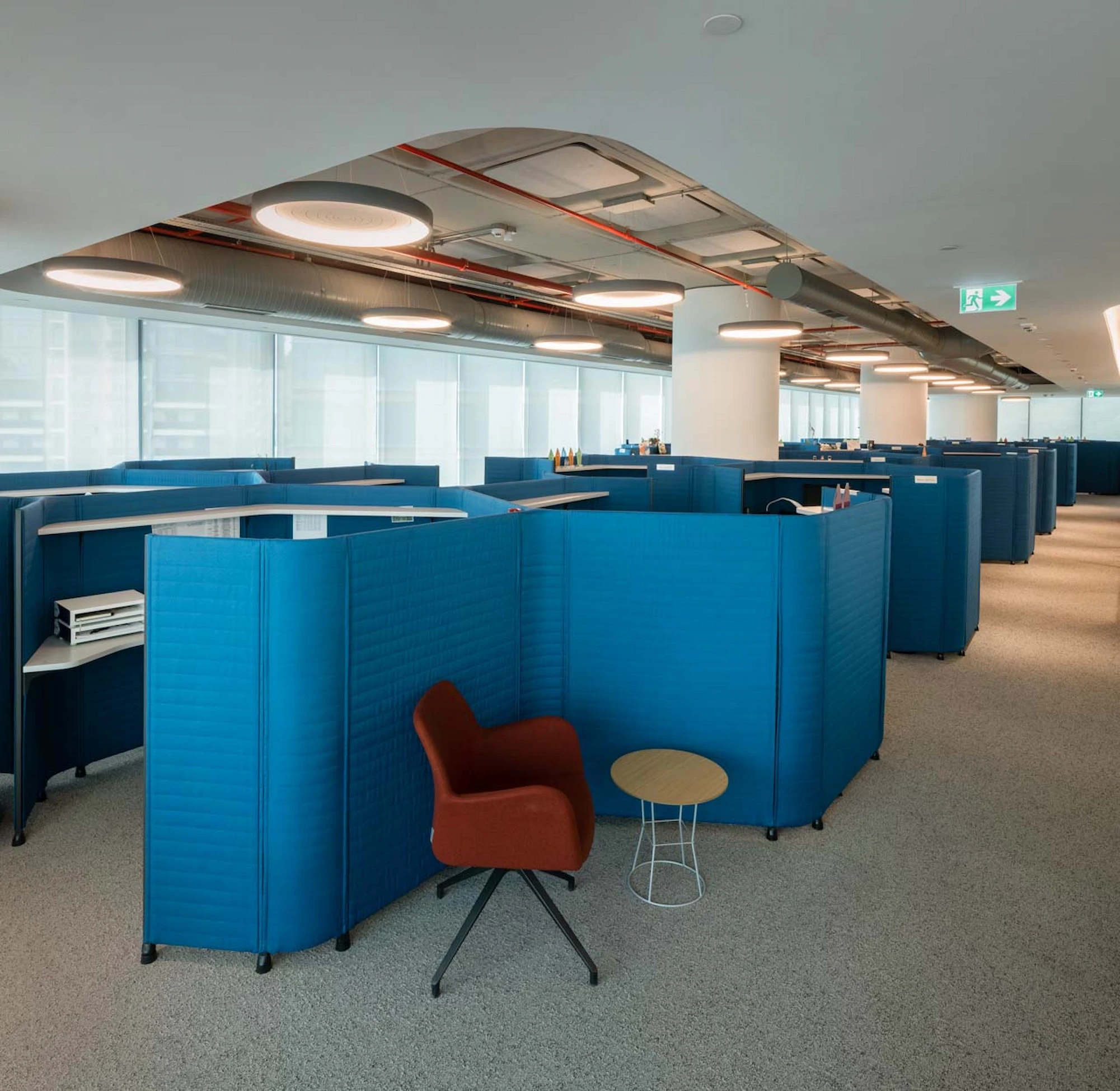 The office is on the fifth floor and has a panaromic view of city and nature. In order to reflect the corporate identity, design language has been discussed in details with the shareholders. The main purpose was to create an efficient workspace with flexible working areas, a strong digital aspect and the sense of biophilic design.