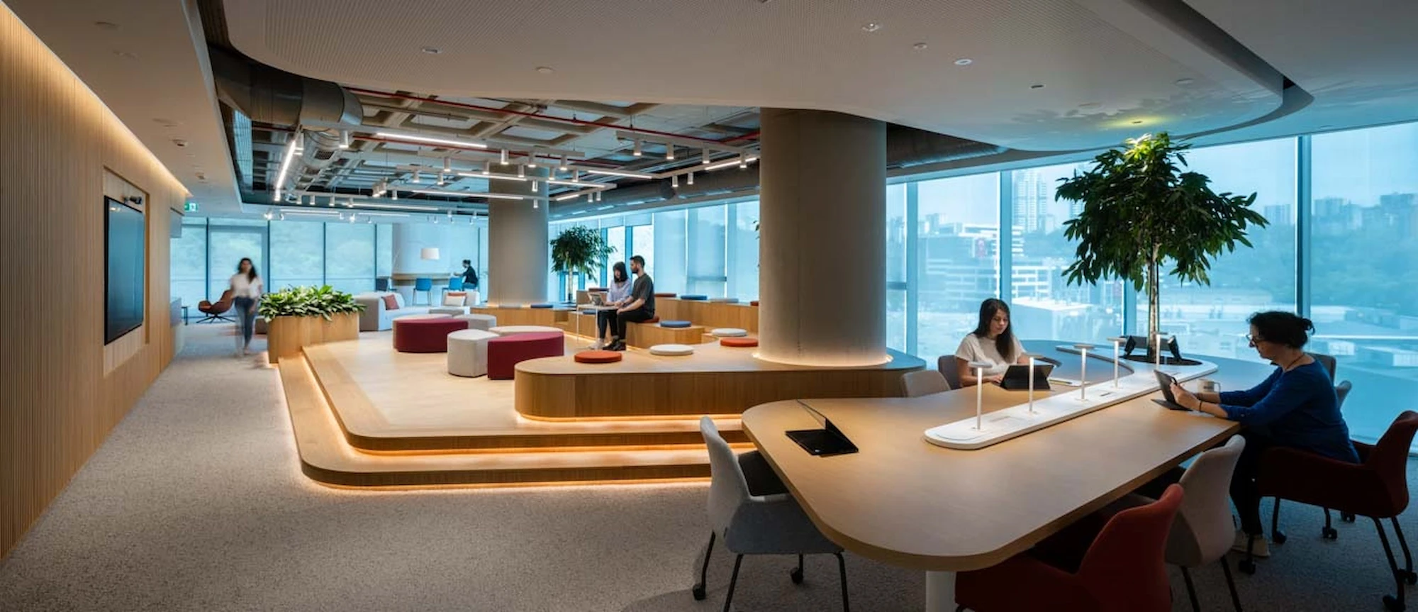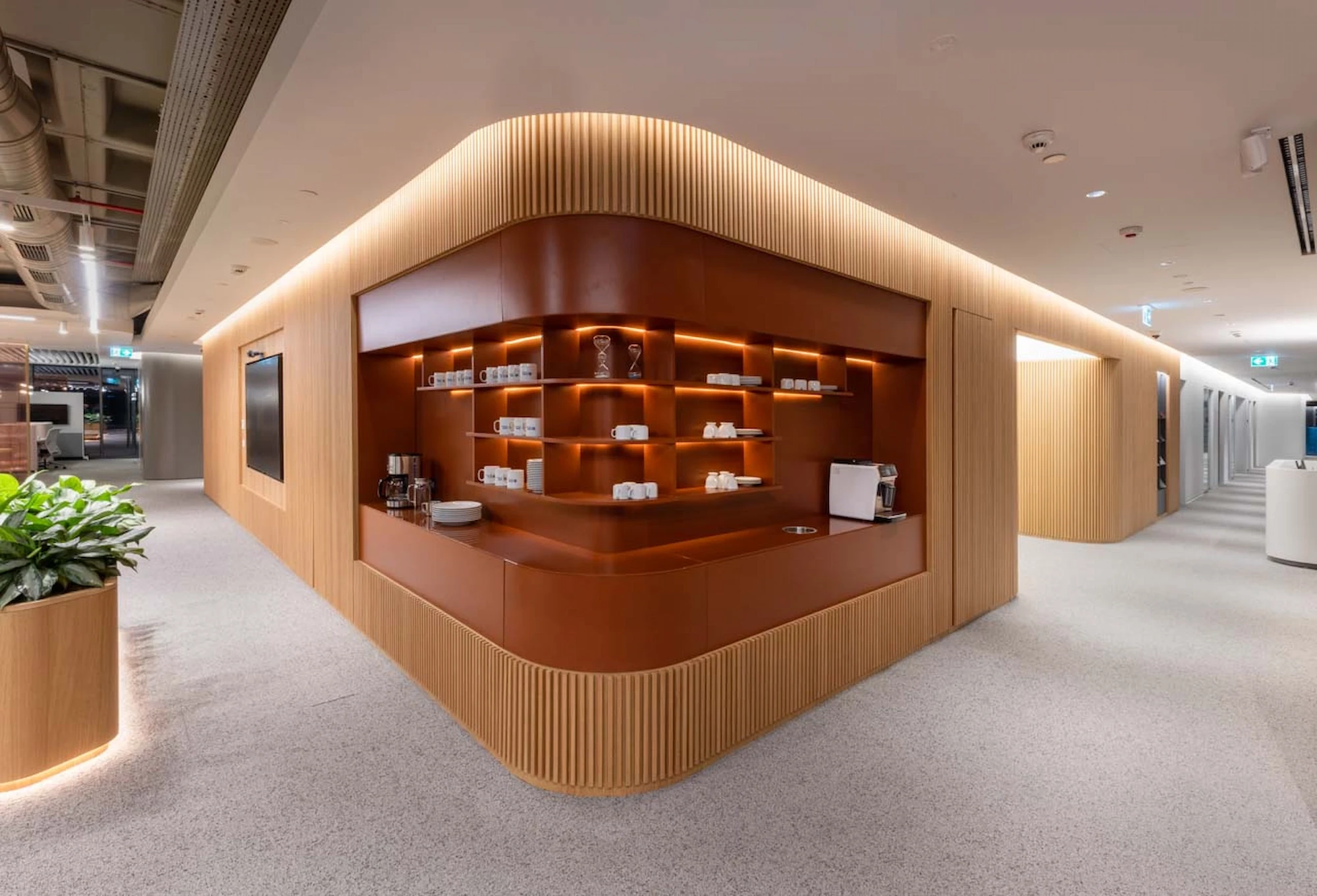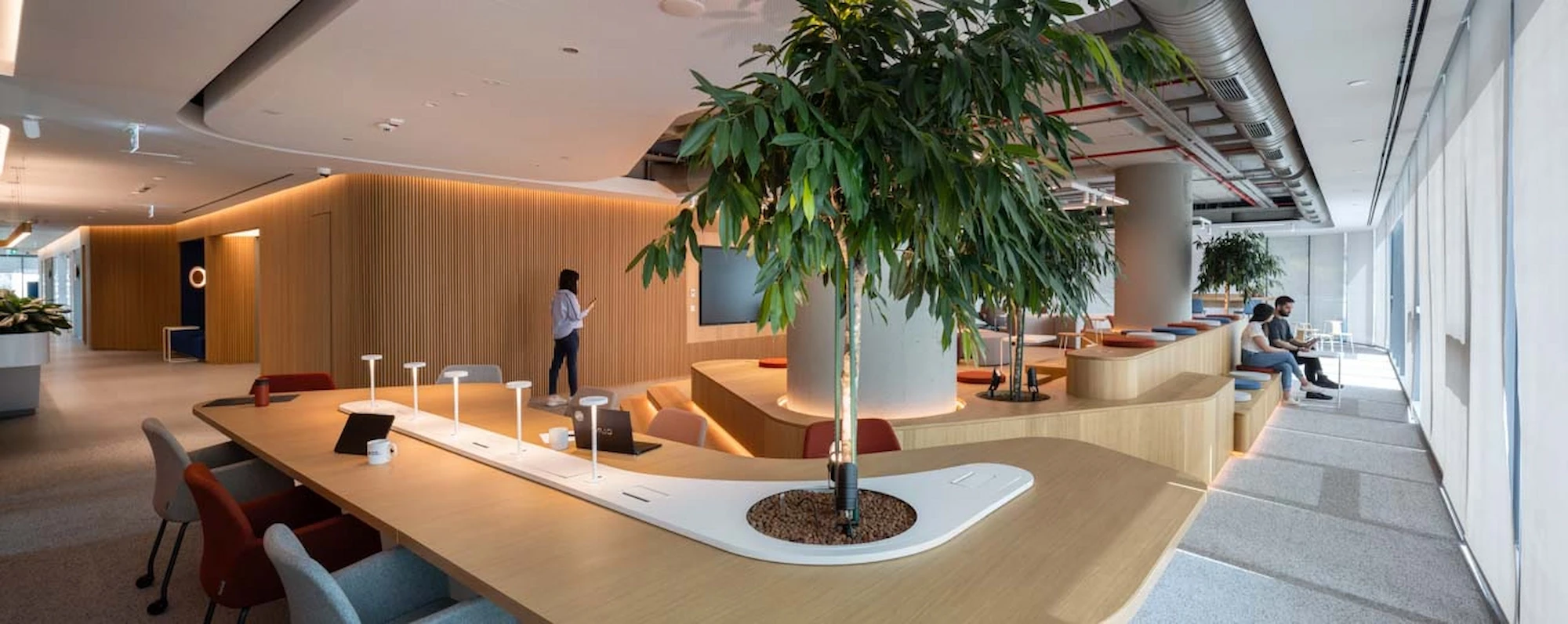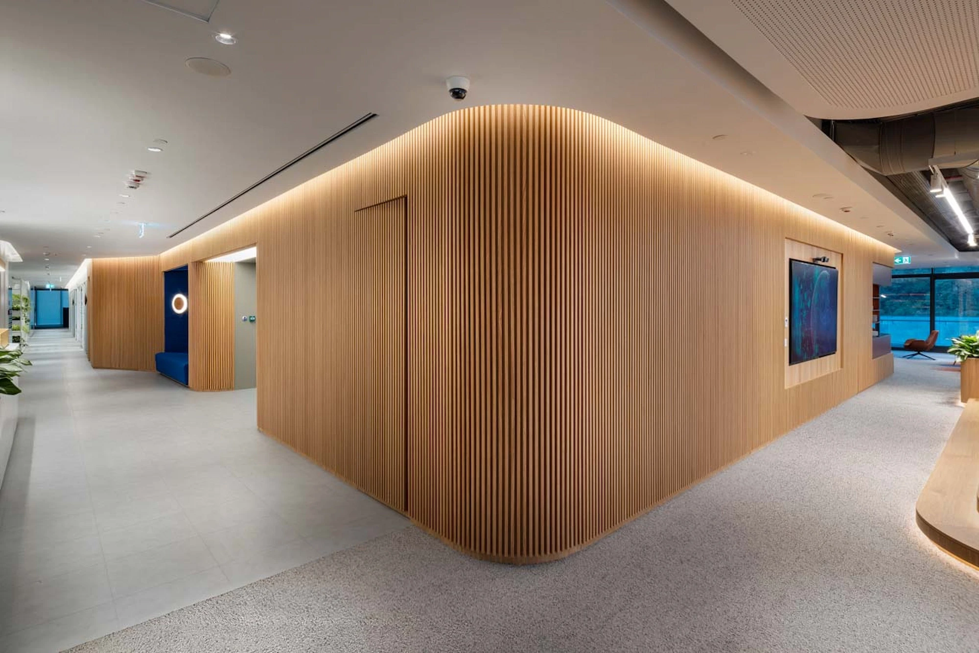 The office is on the fifth floor and has a panaromic view of city and nature. In order to reflect the corporate identity, design language has been discussed in details with the shareholders. The main purpose was to create an efficient workspace with flexible working areas, a strong digital aspect and the sense of biophilic design.