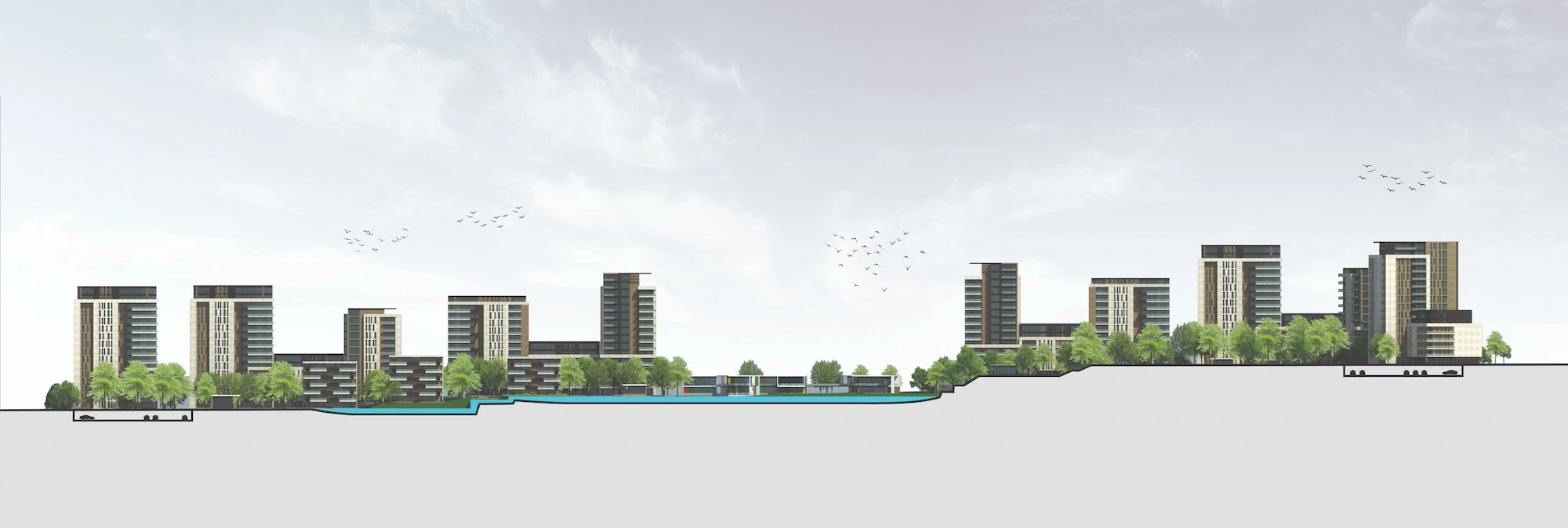 The Sancaktepe Waterfalls masterplan is a mixed-use development in an abandoned industrial plot located at the edge of Istanbul in a district that is rapidly being converted into a vast new residential zone.